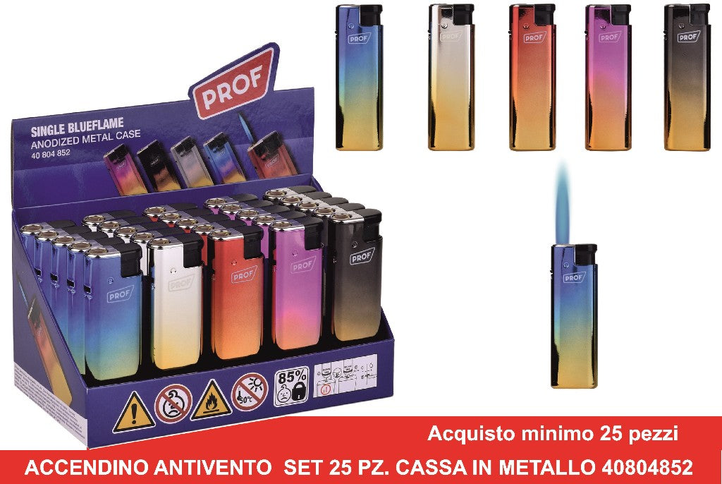 Accendino Antivento Conf. 25 Pz. Con Cassa In Metallo Anodizzato Professionale