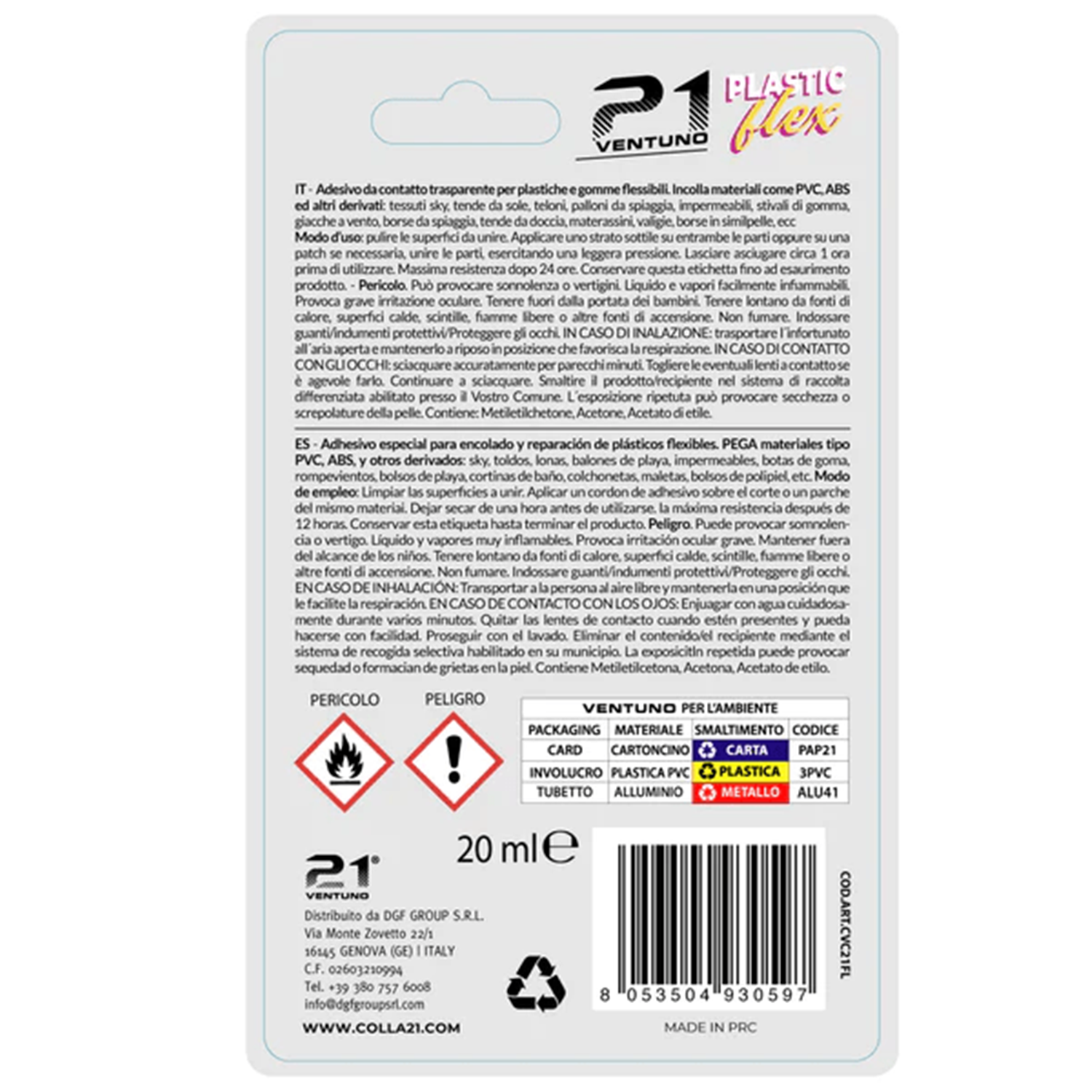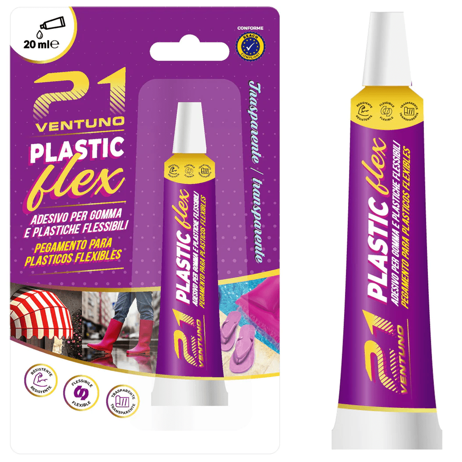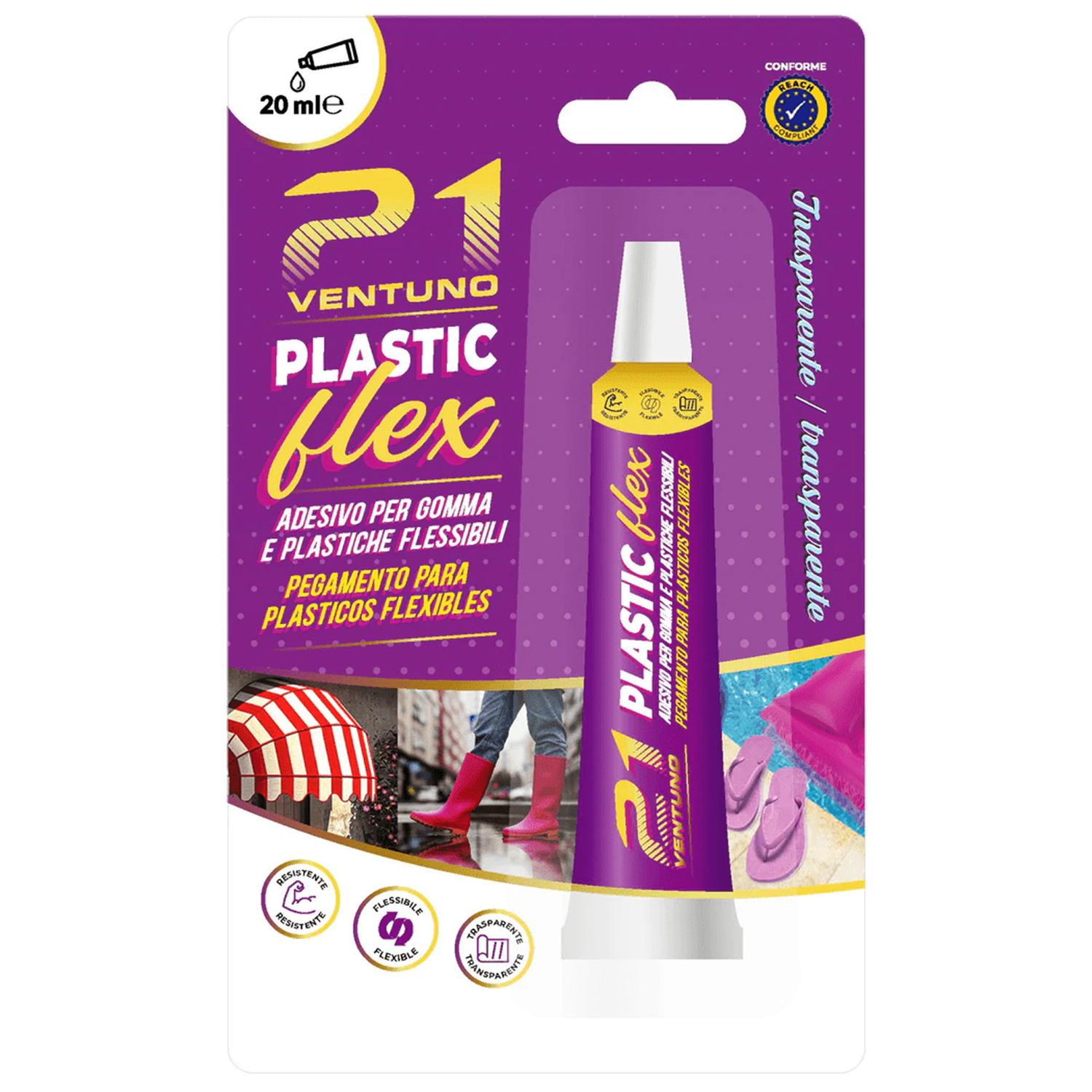 Colla 21 Plastic Flex – Adesivo a Contatto per Plastiche e Gomme Flessibili PVC ABS – Trasparente – Tubetto 20 ml