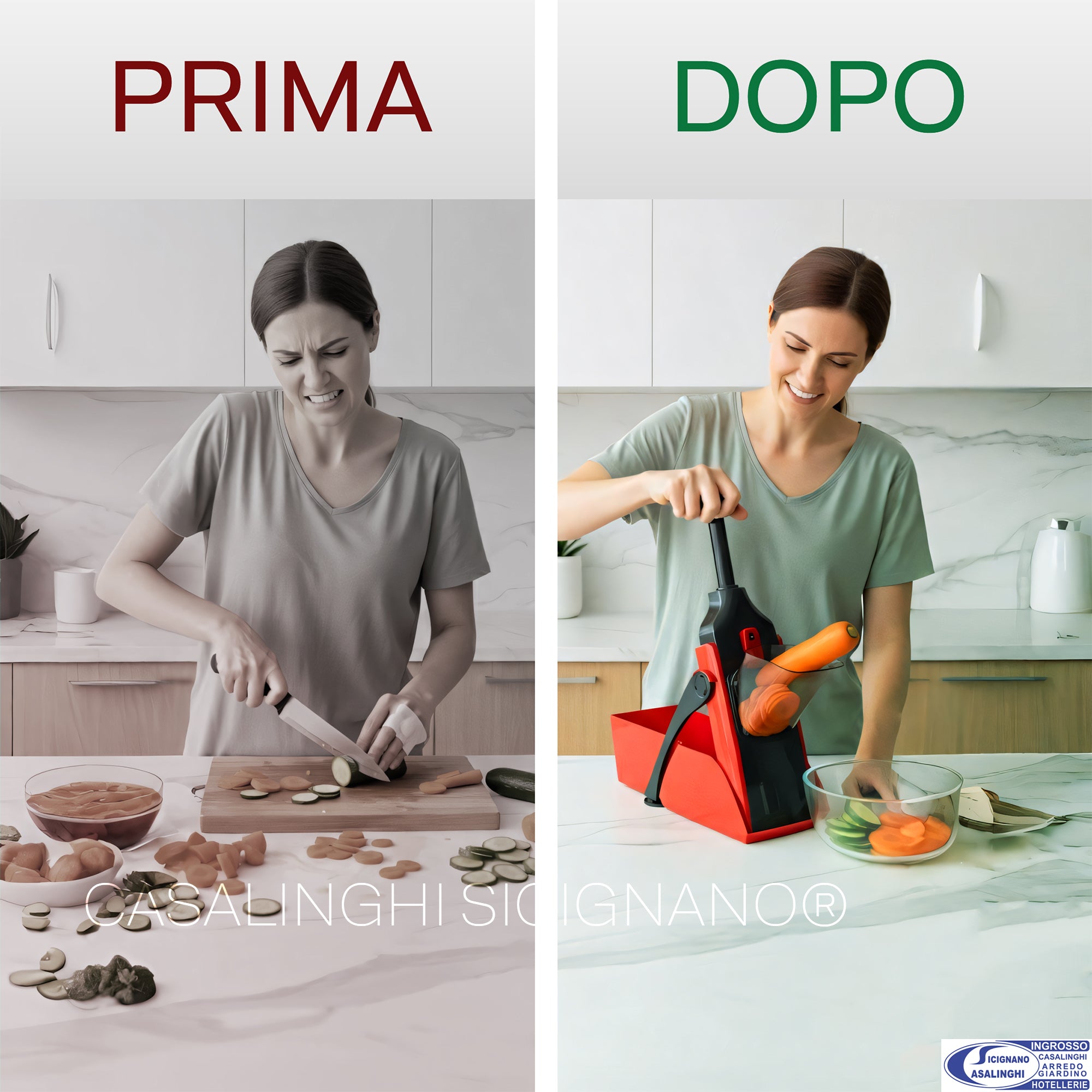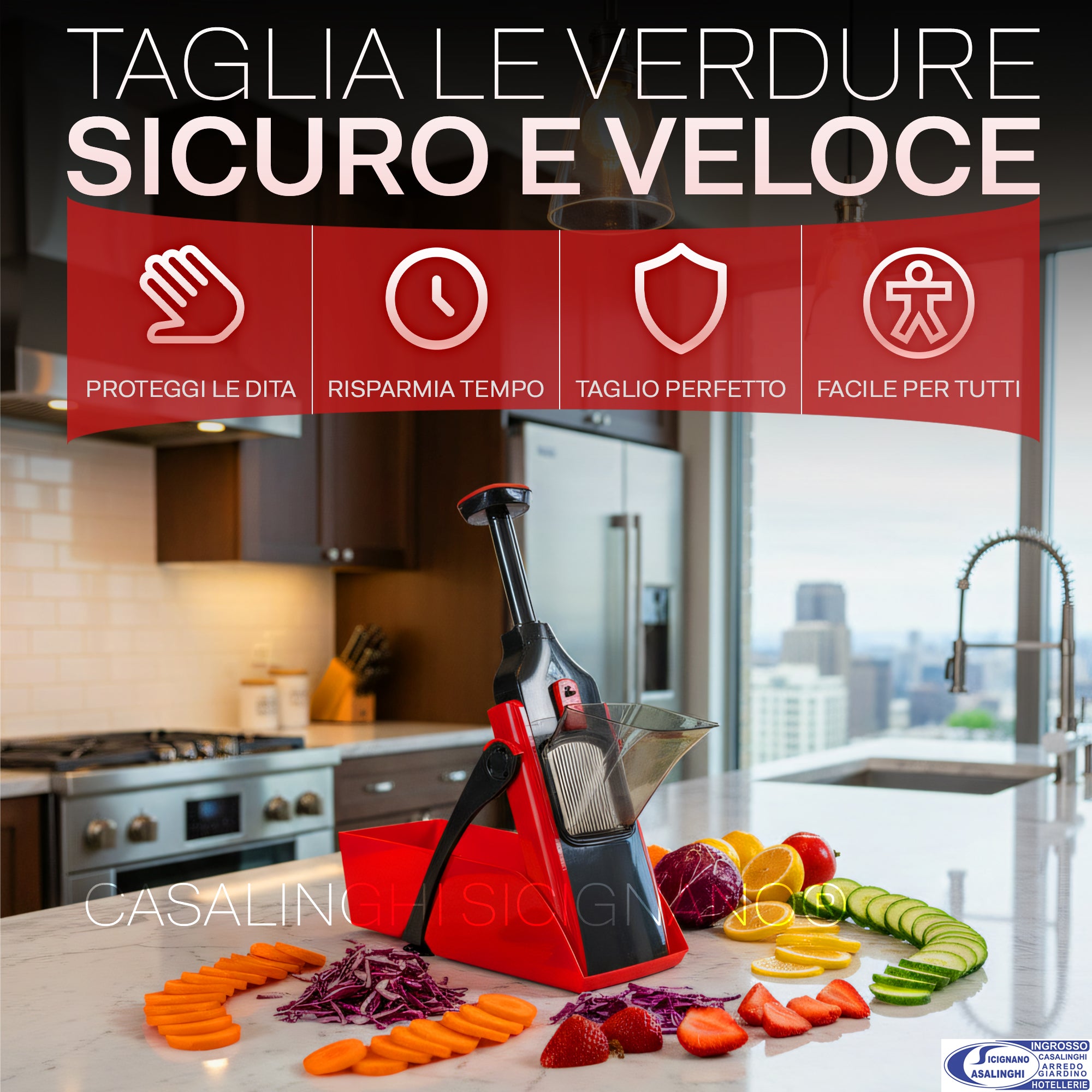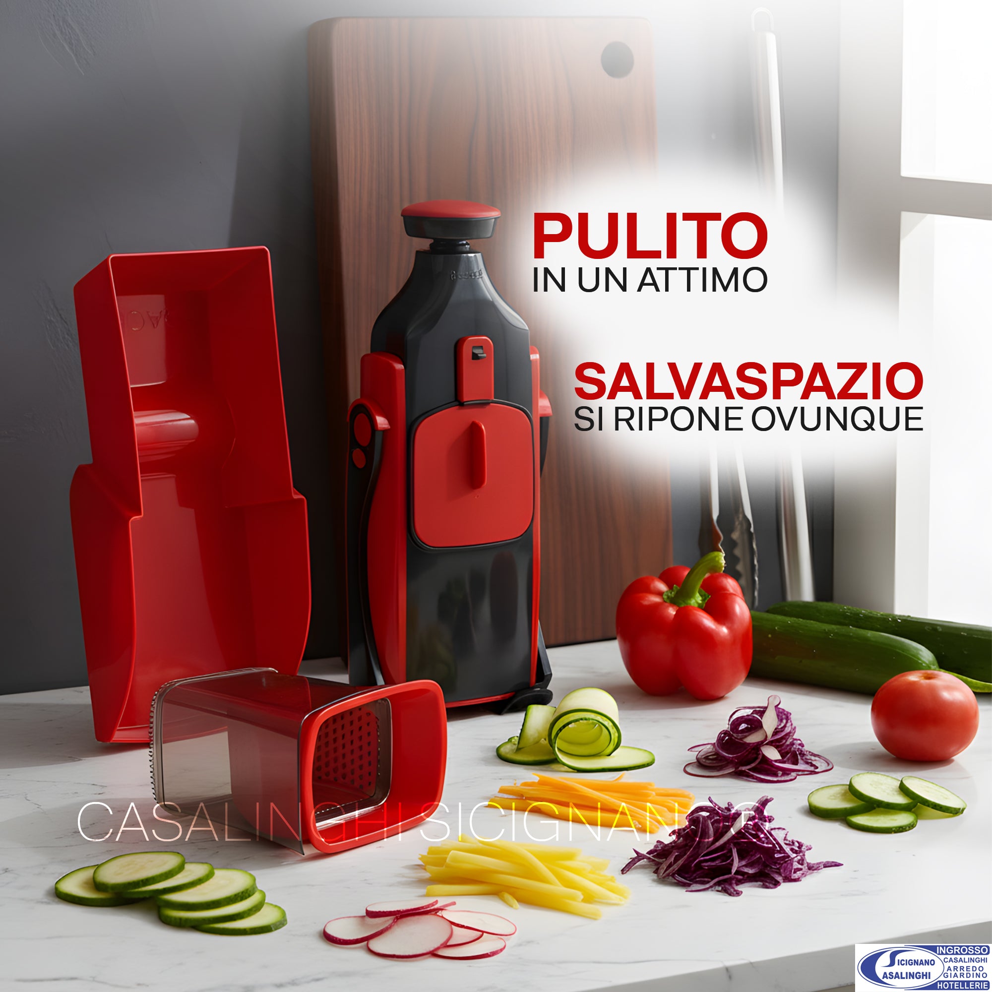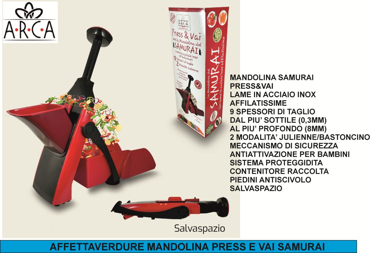 Arca Mandolina a Pressione Samurai – Affettaverdure in Acciaio Inox con 9 Spessori di Taglio