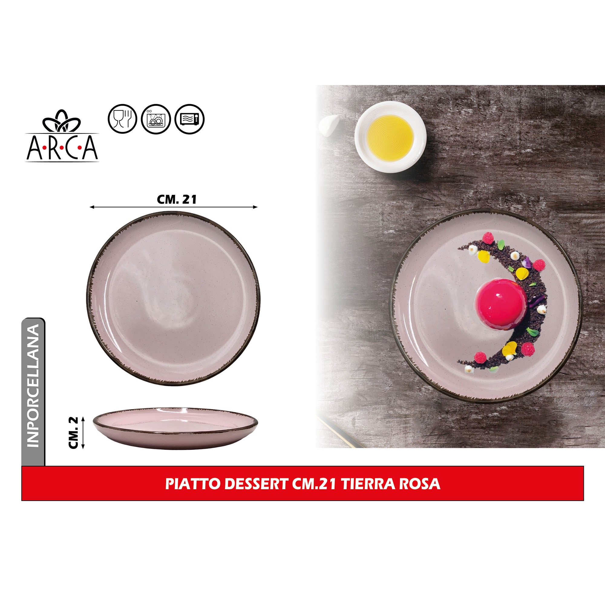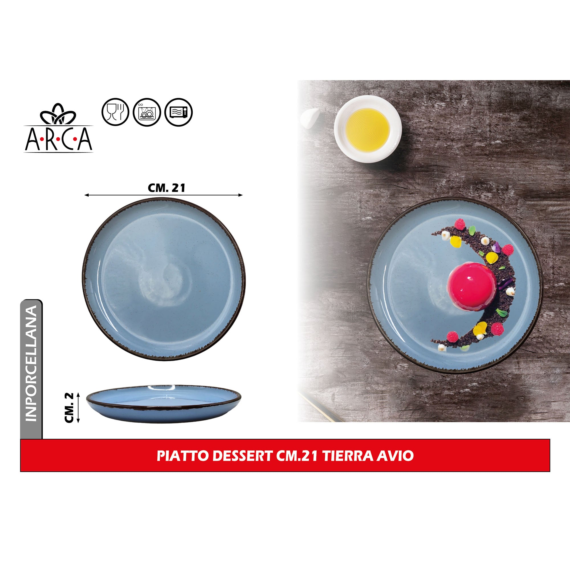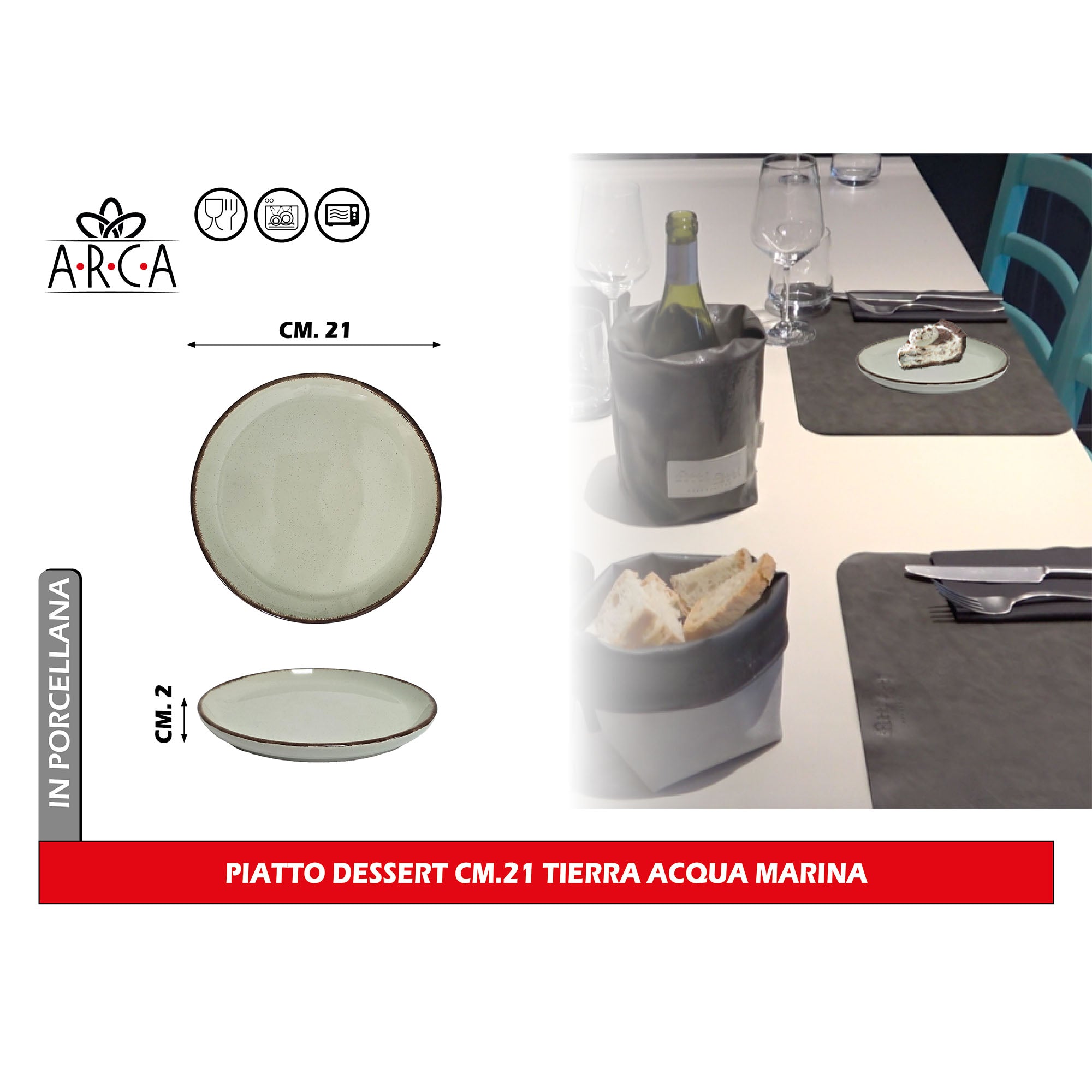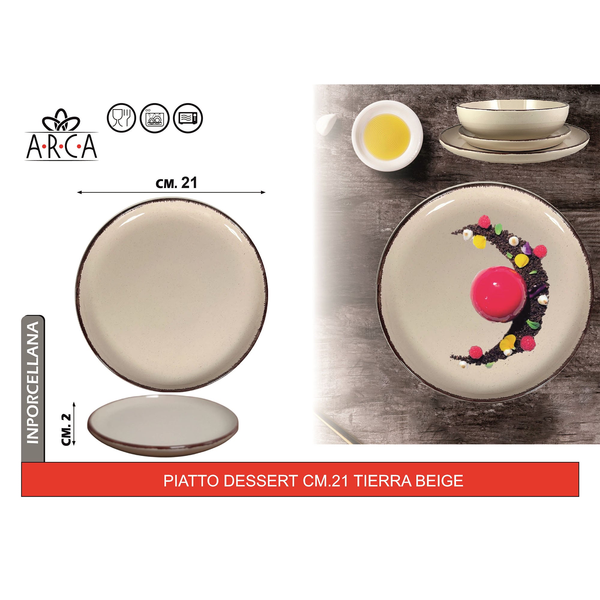 Arca Piatto Dessert Modello Tierra Ø 21 cm in Porcellana, Adatto al Lavastoviglie e al Microonde - Diversi Colori