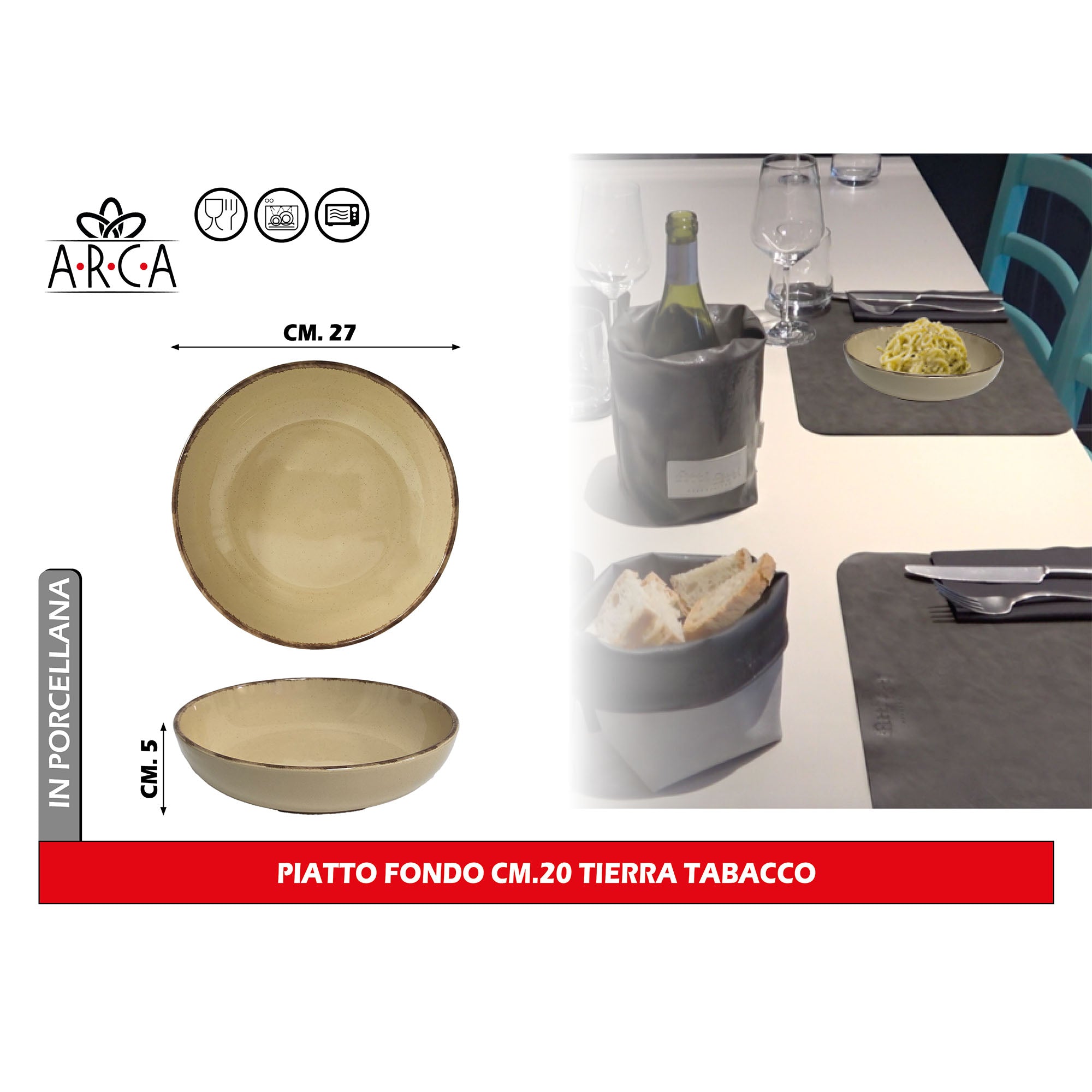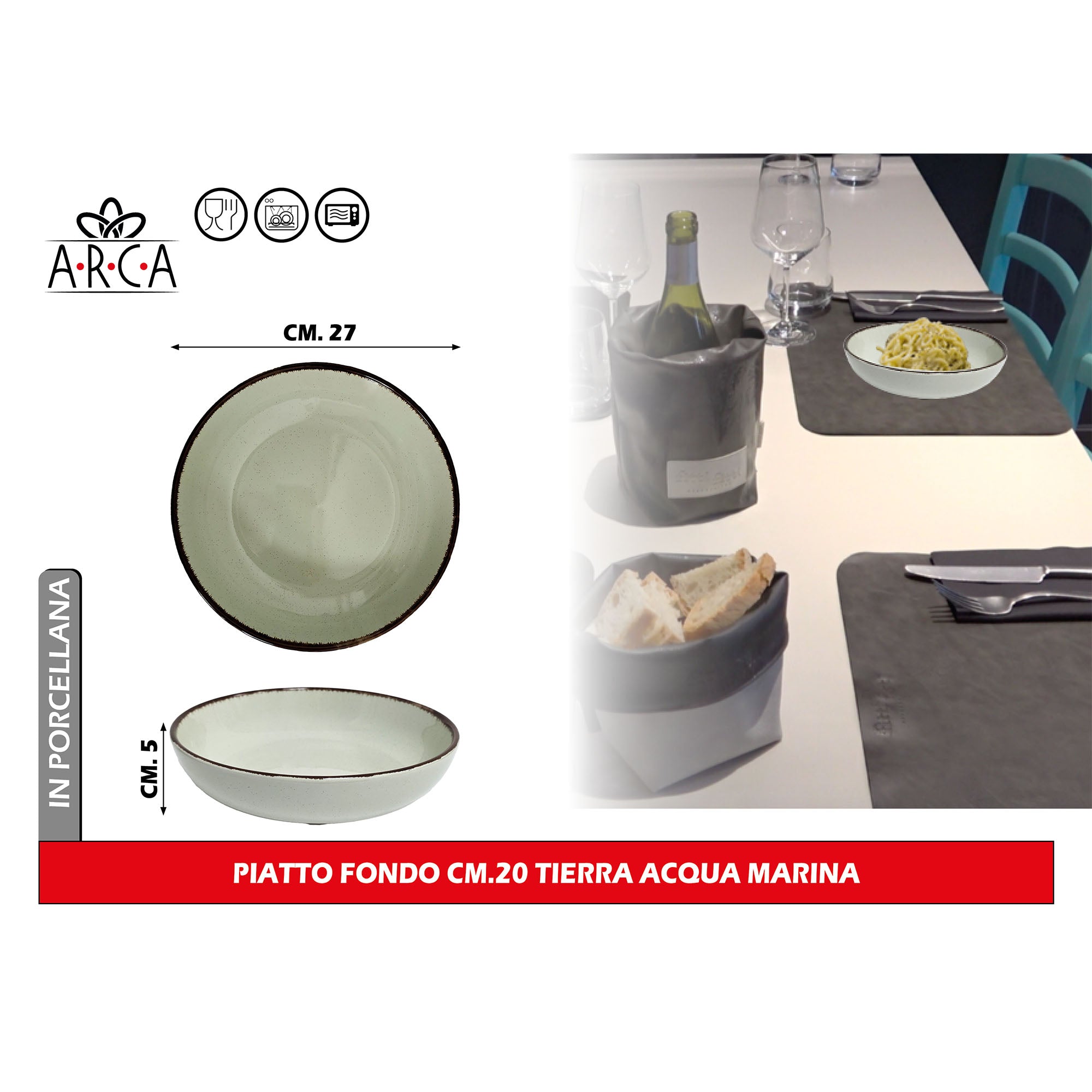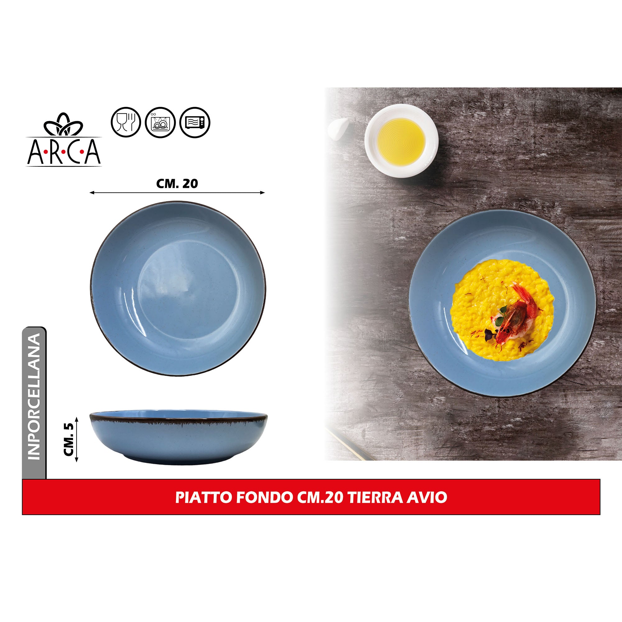 Arca Piatto Fondo Modello Tierra Ø 20 cm in Porcellana, Adatto al Lavastoviglie e al Microonde - Diversi Colori
