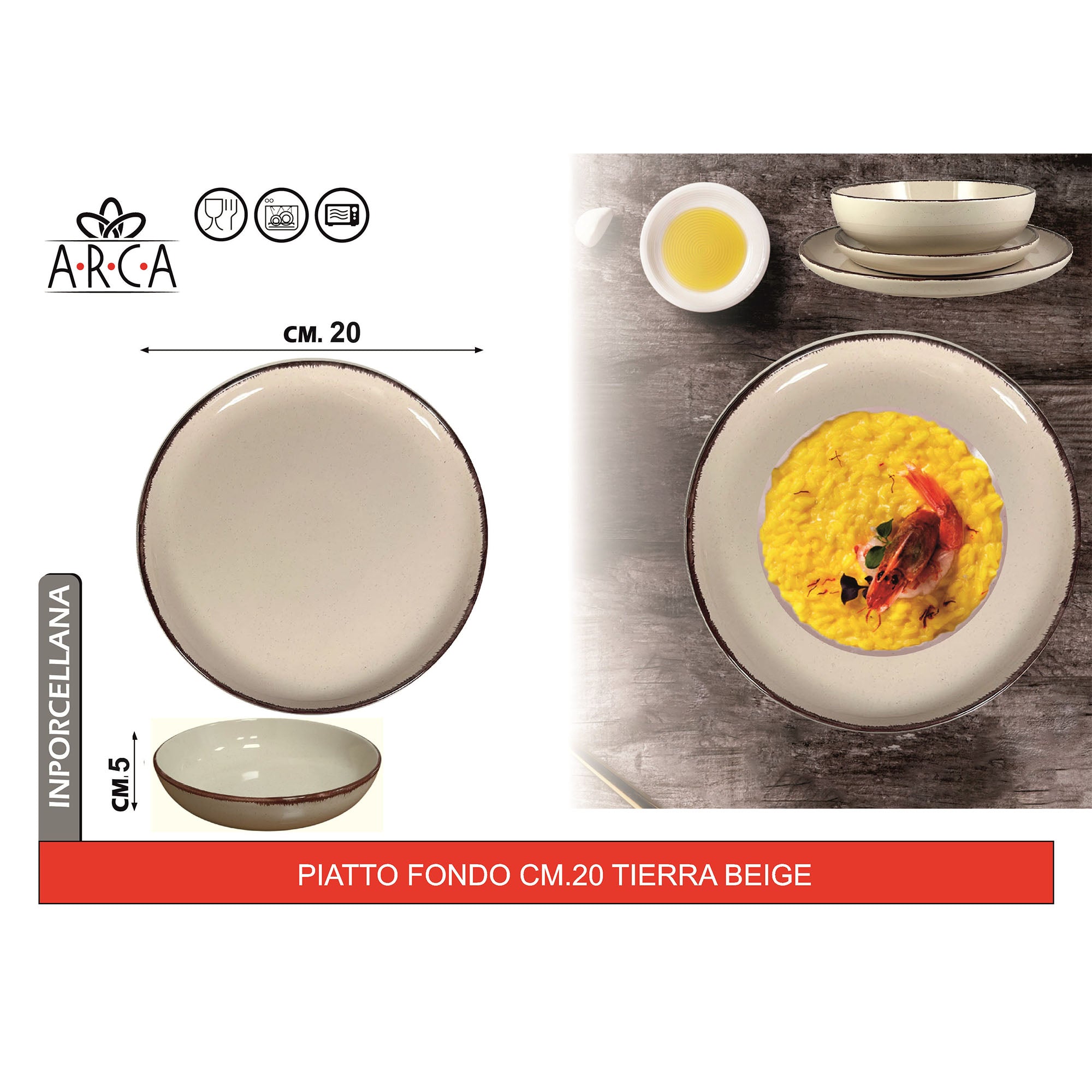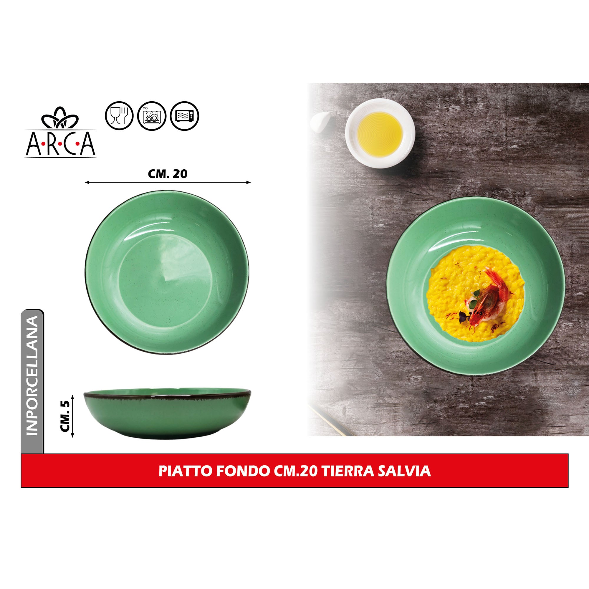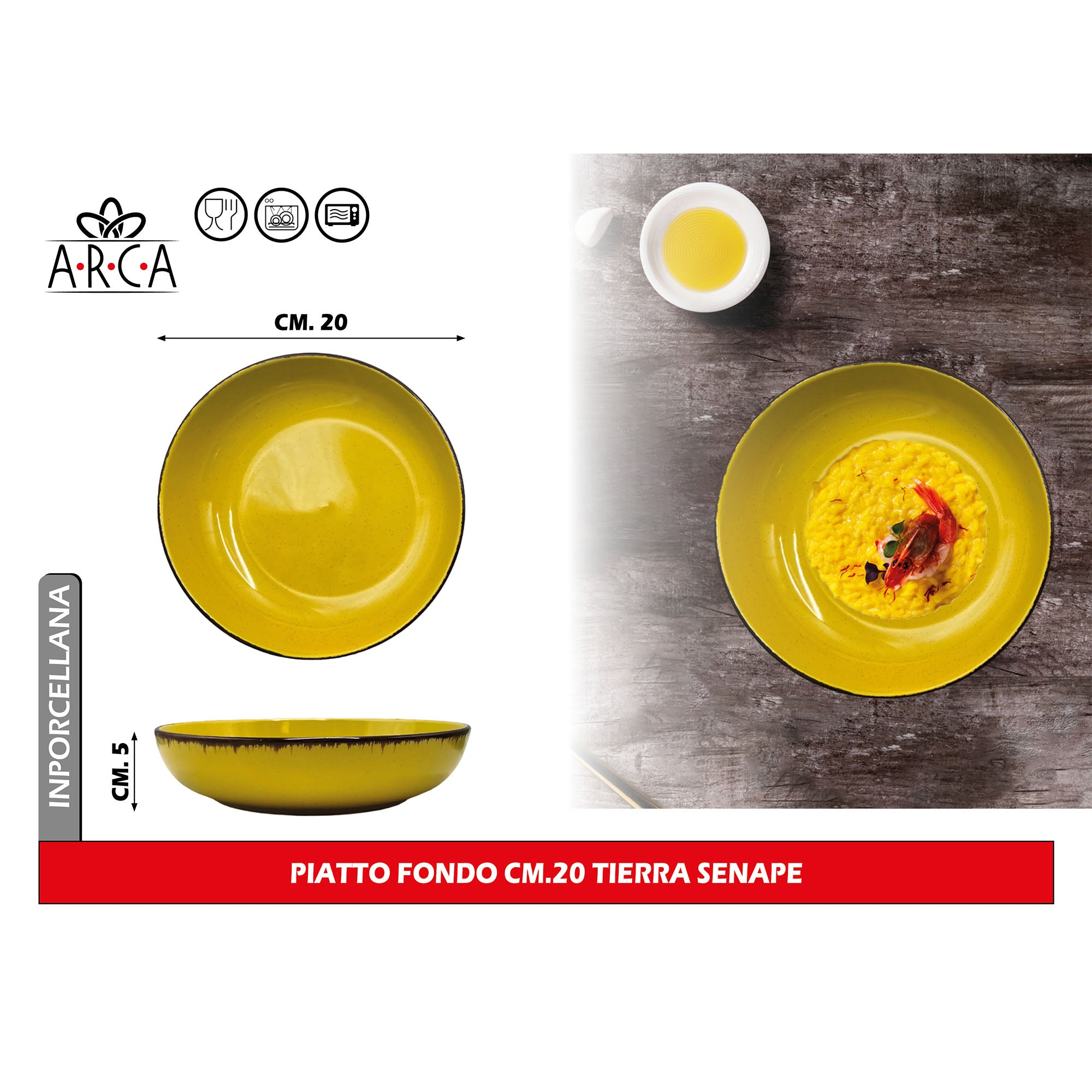 Arca Piatto Fondo Modello Tierra Ø 20 cm in Porcellana, Adatto al Lavastoviglie e al Microonde - Diversi Colori