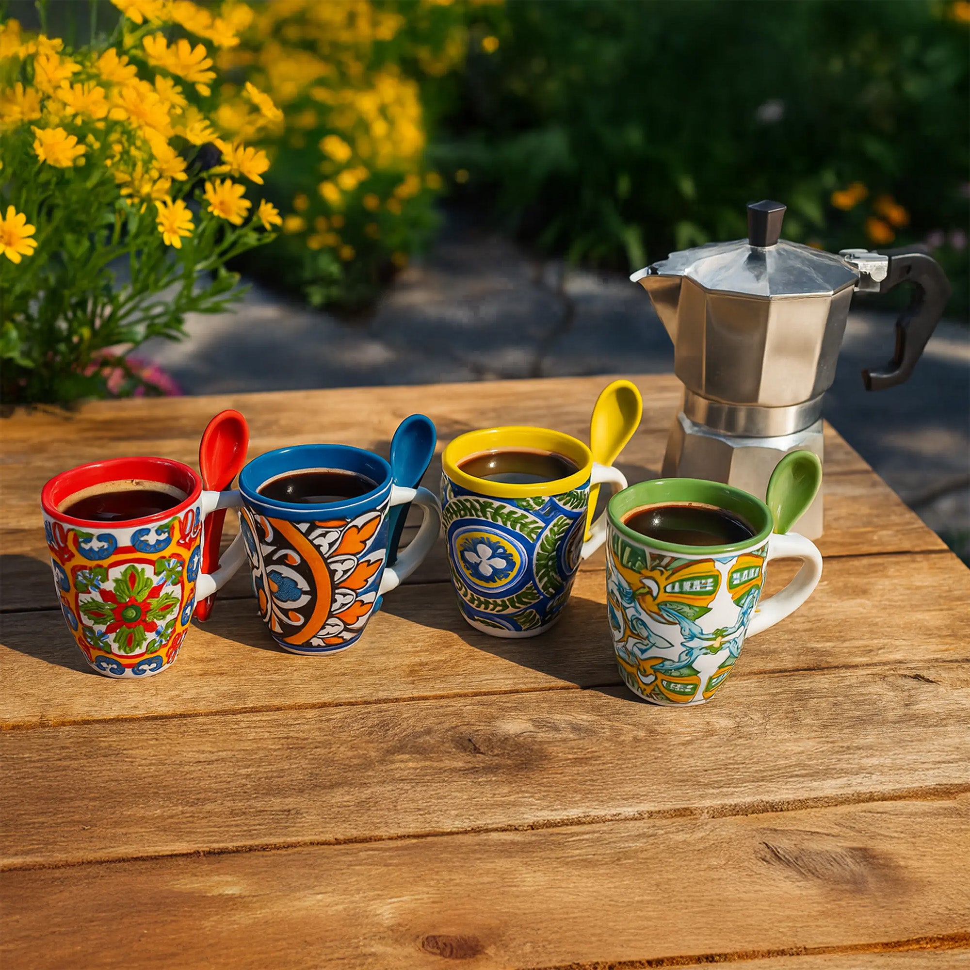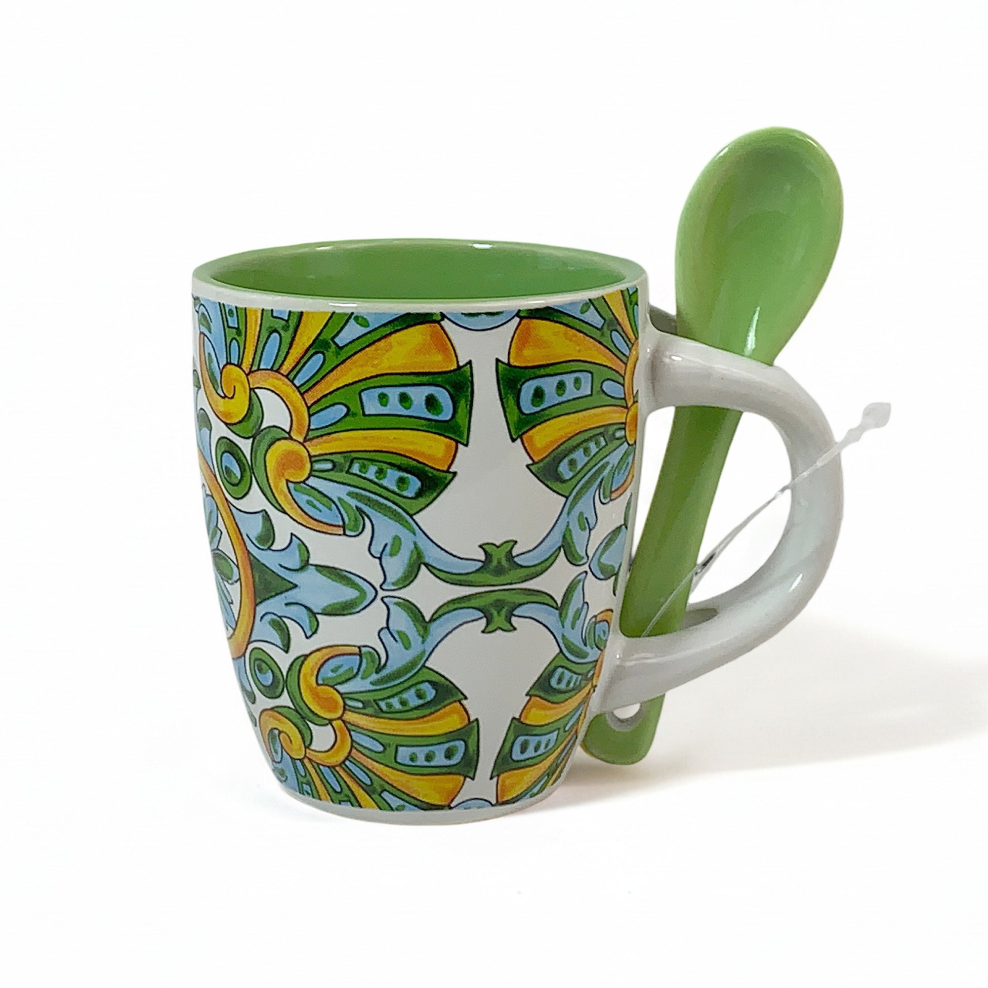 Arca Tazzina Caffè Espresso con Cucchiaino Coordinato – Decorazioni Assortite – Idea Regalo per Pausa Caffè e Colazione