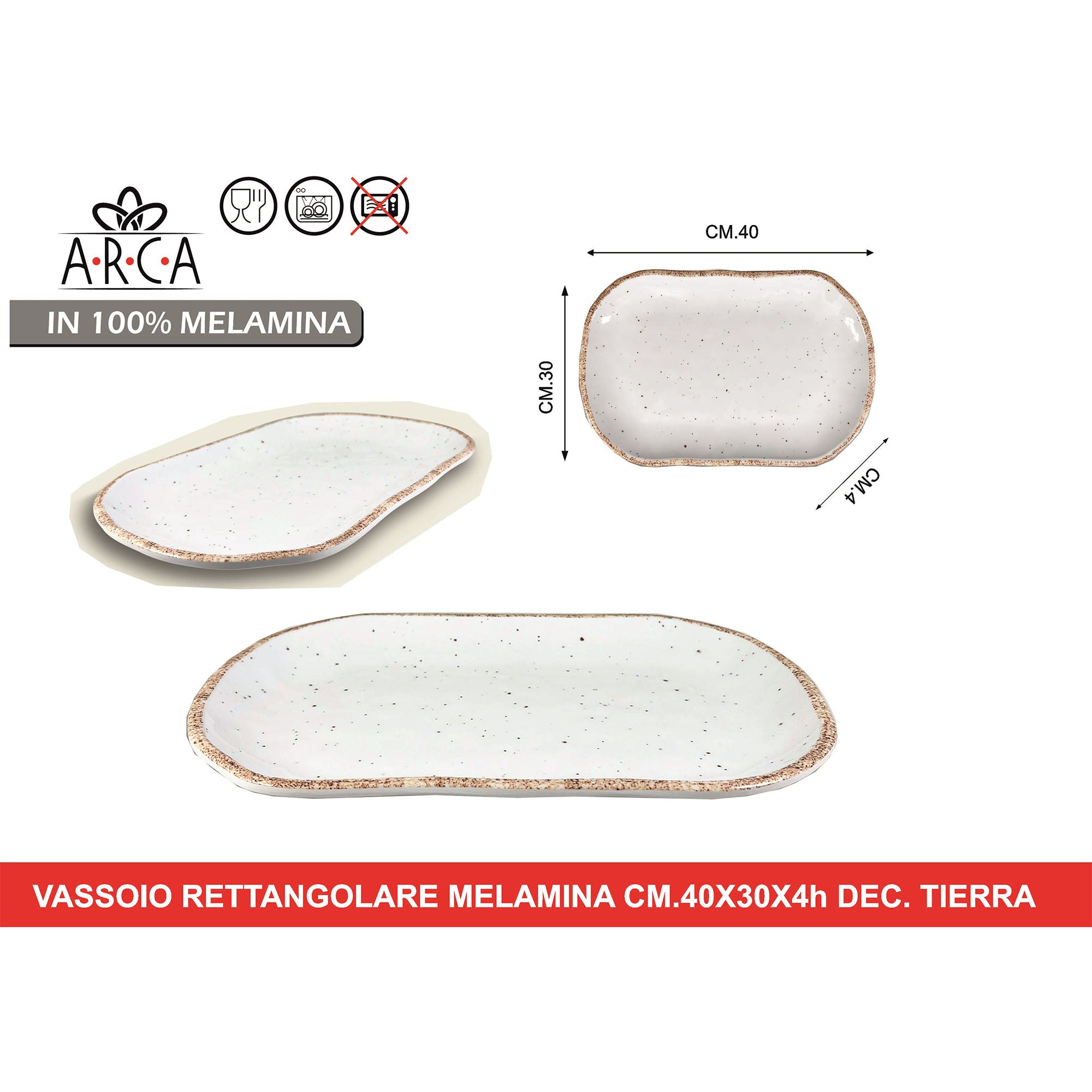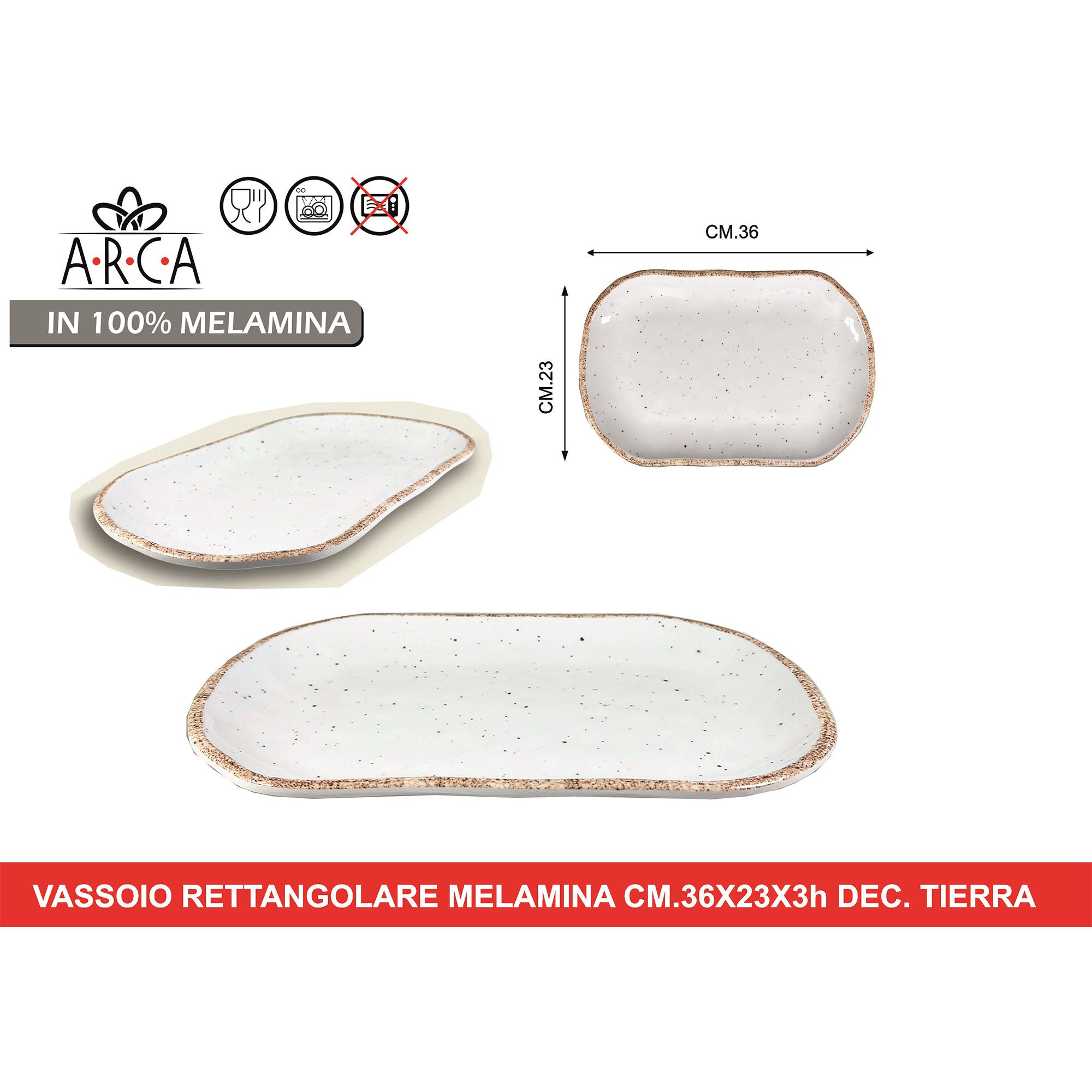 Arca Vassoio Rettangolare in 100% Melamina, Decoro Tierra, Adatto alla Lavastoviglie | Diverse Misure