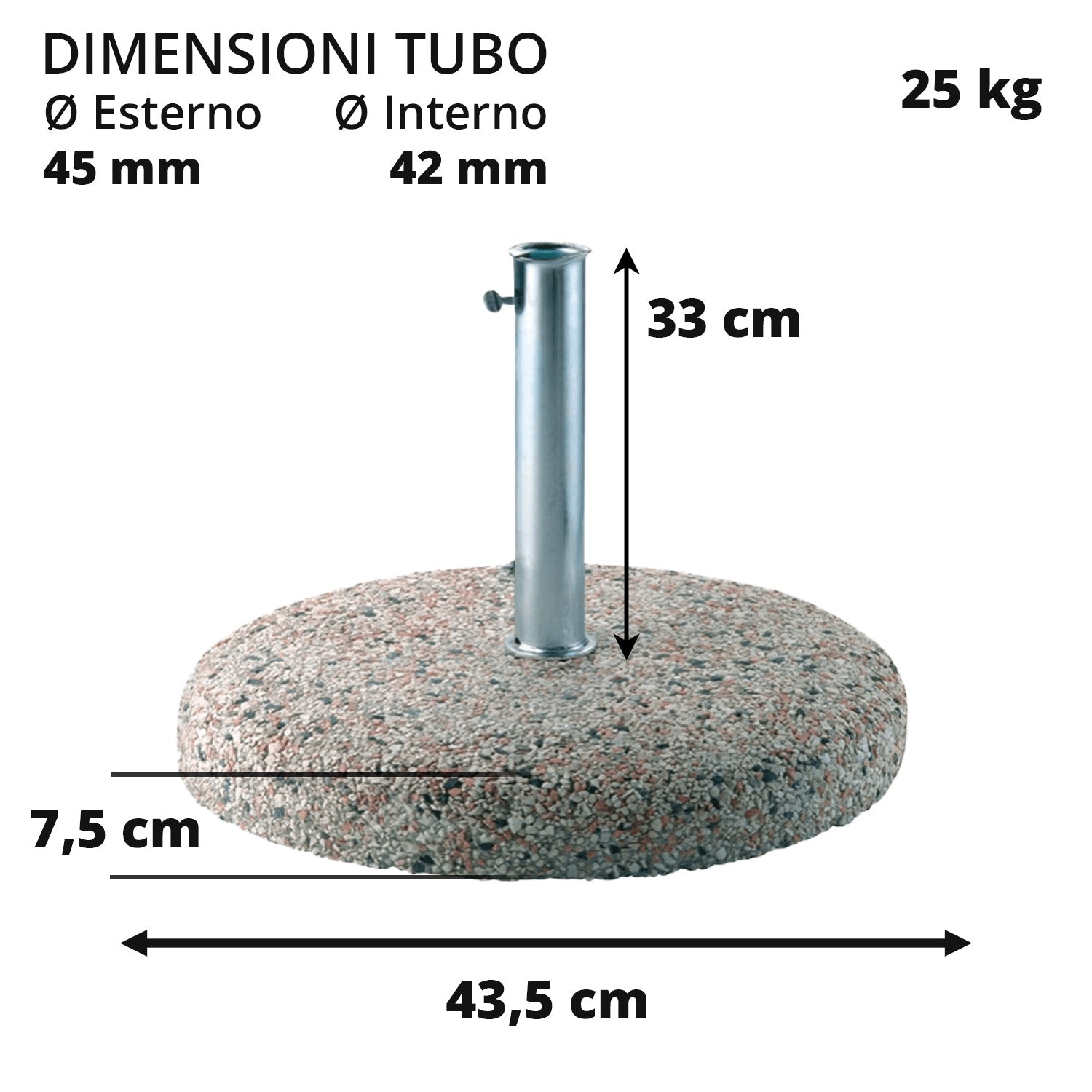 Base Ombrellone In Cemento Granito 25-35Kg Tubo 42-52-62Mm
