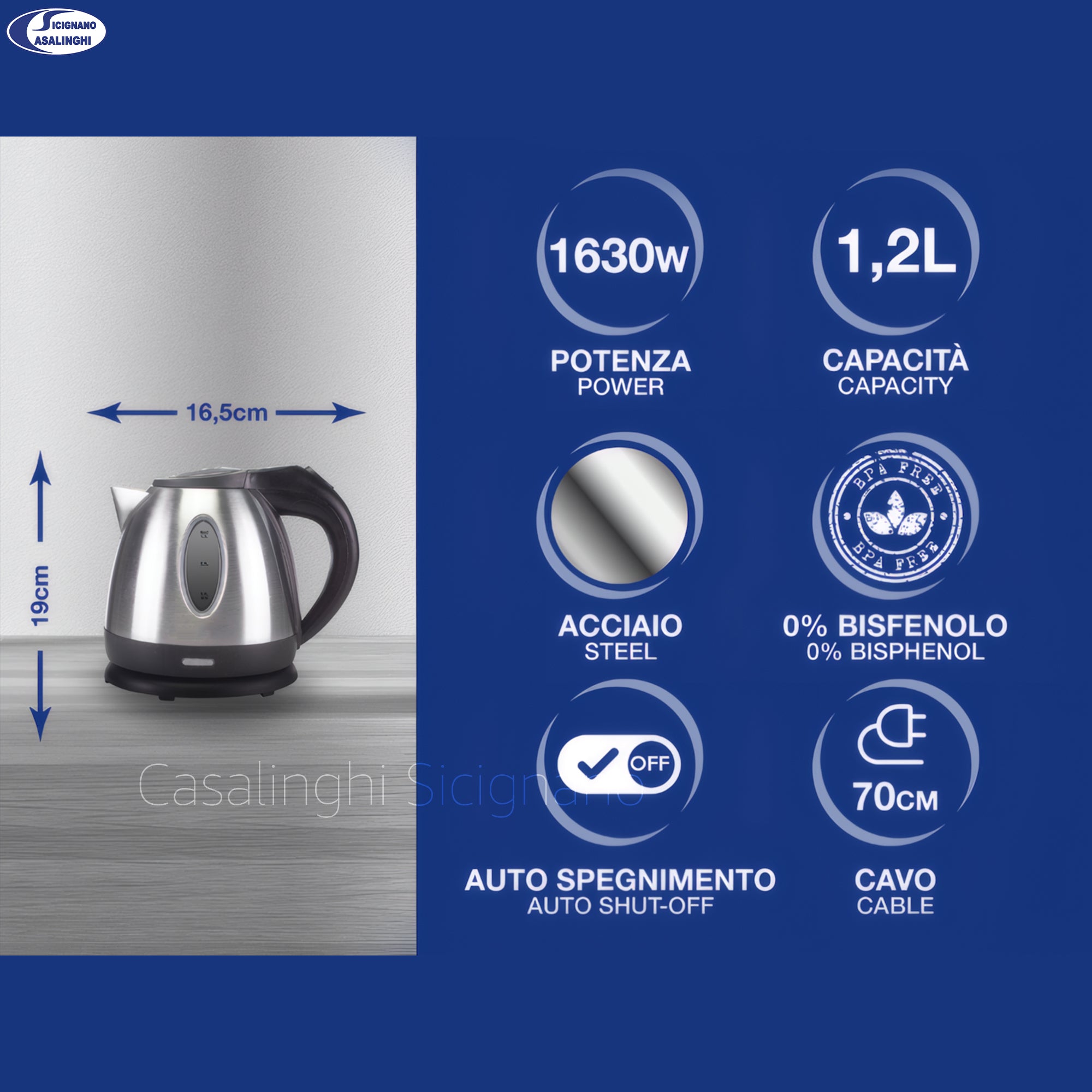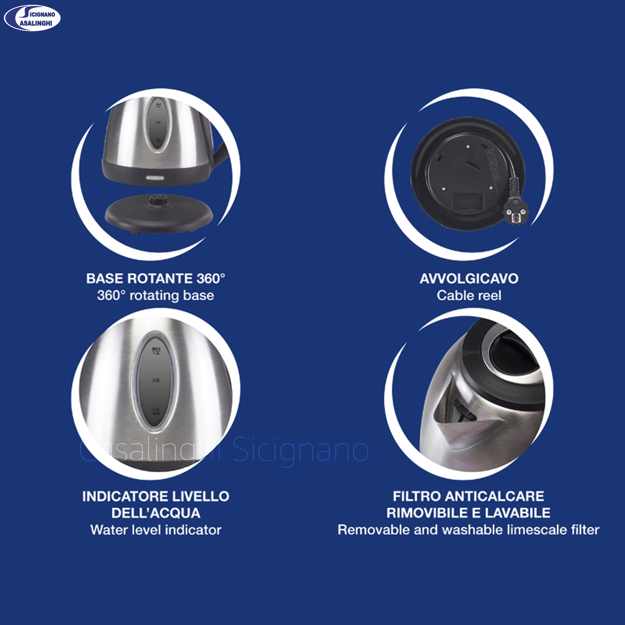 Beper Bollitore Elettrico 1,2 L in Acciaio Inox – Base 360°, Spegnimento Automatico, Filtro Anticalcare