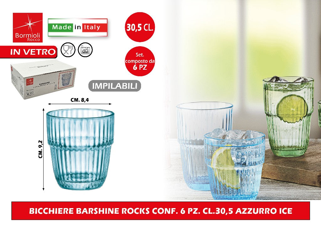 Bicchiere Barshine Rocks Conf. 6 Pz. Cl.30,5 Impilabile Azzurro Ice