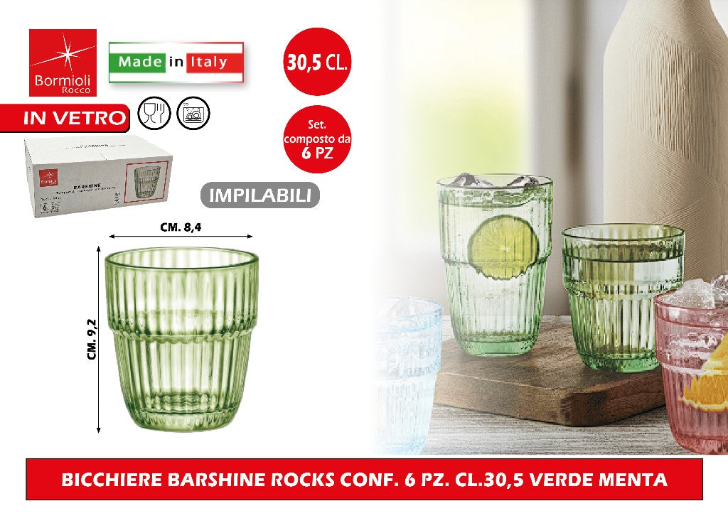 Bicchiere Barshine Rocks Conf. 6 Pz. Cl.30,5 Impilabile Verde Menta