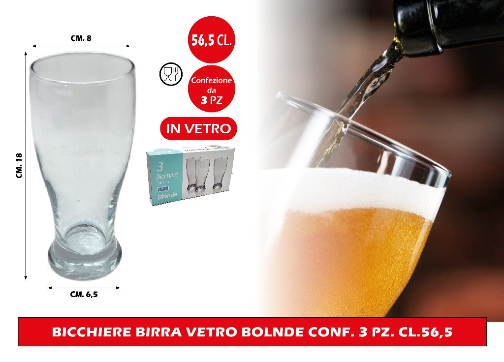 Bicchiere Birra Vetro Bolnde Conf. 3 Pz. Cl.56,6
