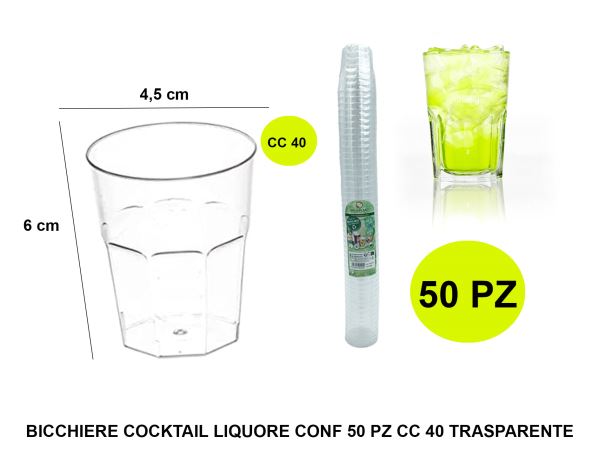 Bicchiere Cocktail Liquore Conf. 50 Pz. Cc.40 Trasparente
