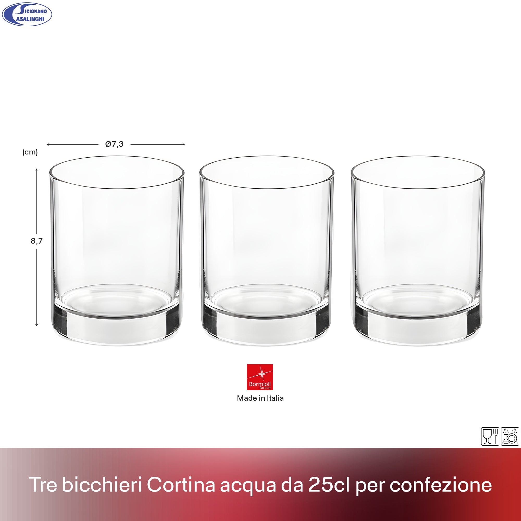 Set 3 Bicchieri Acqua Bormioli Rocco Cortina 25 cl - Vetro Trasparente Made in Italy, Design Pulito e Lavabile in Lavastoviglie