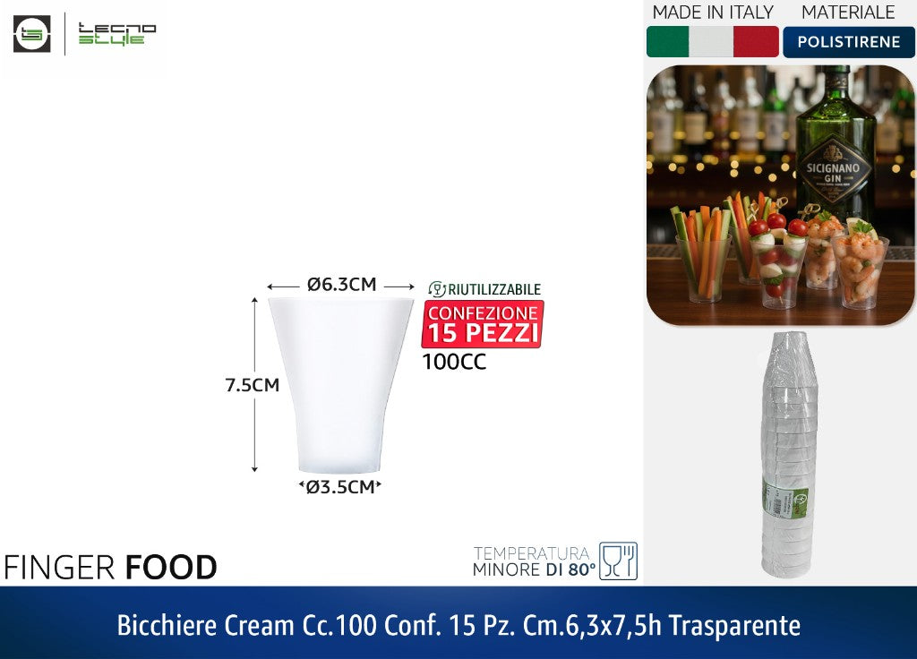 BICCHIERE CREAM CC.100 CONF. 15 PZ. CM.6,3X7,5h TRASPARENTE