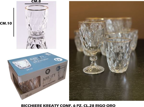 Bicchiere Kreaty Conf. 6 Pz. Cl.28 Rigo Oro