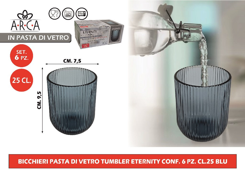 BICCHIERI PASTA DI VETRO TUMBLER ETERNITY CONF. 6 PZ. CL.25 BLU