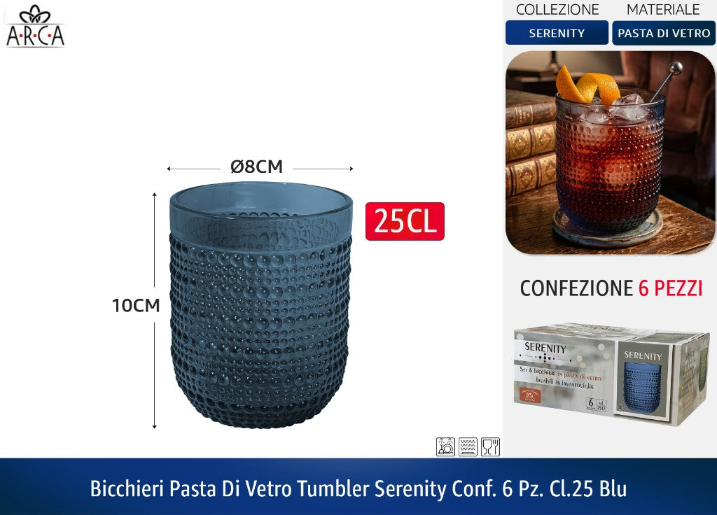 BICCHIERI PASTA DI VETRO TUMBLER SERENITY CONF. 6 PZ. CL.30 BLU