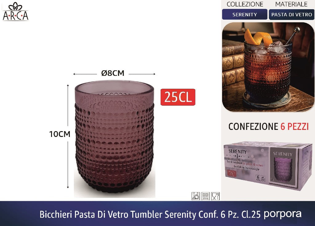 Bicchieri Pasta Di Vetro Tumbler Serenity Conf. 6 Pz. Cl.30 Porpora