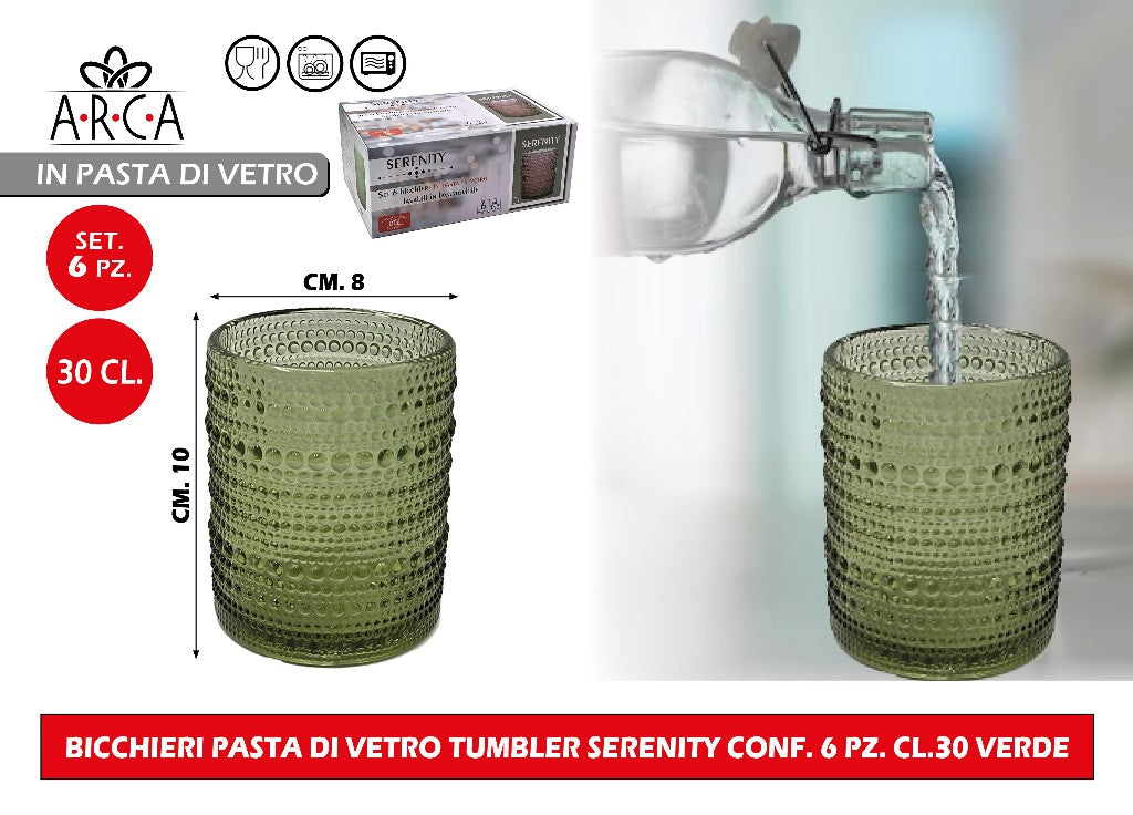 BICCHIERI PASTA DI VETRO TUMBLER SERENITY CONF. 6 PZ. CL.30 VERDE