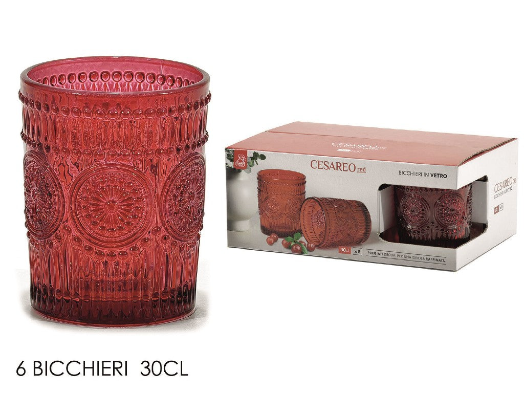 Bicchieri Vetro Conf.6 Pz. Cl.30 Cesareo Rosso