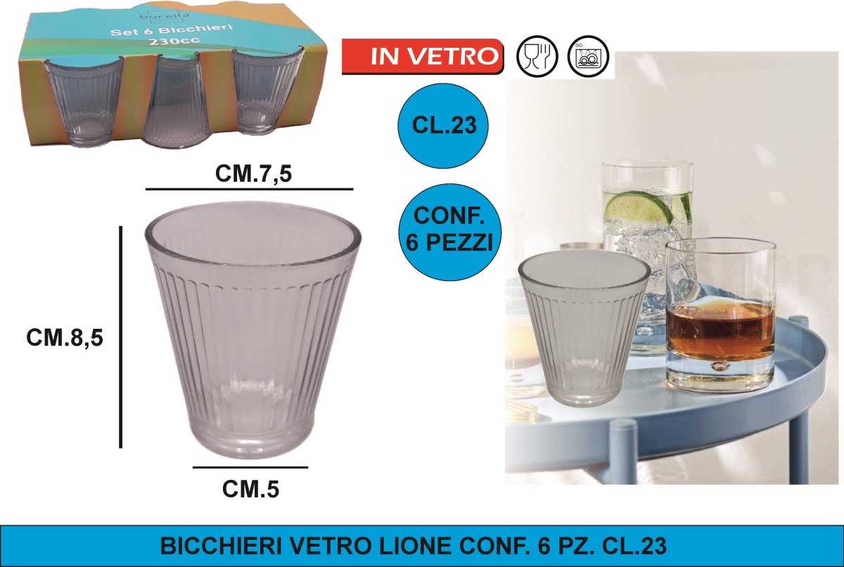Bicchieri Vetro Lione Conf. 6 Pz. Cl.24