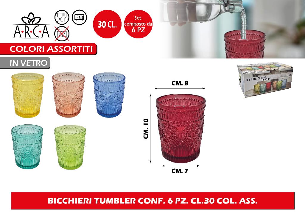 BICCHIERI VETRO TUMBLER CONF. 6 PZ. CL.30 IMPERIAL COL. ASS.