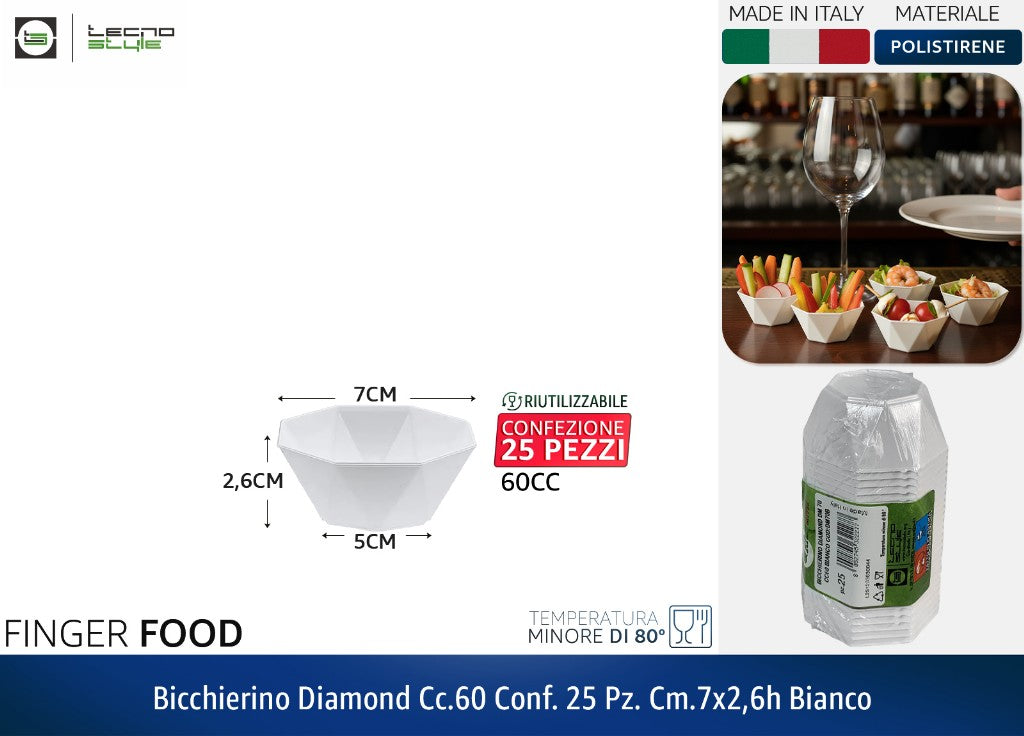BICCHIERINO DIAMOND CC.60 CONF. 25 PZ. CM.7X2,6h BIANCO