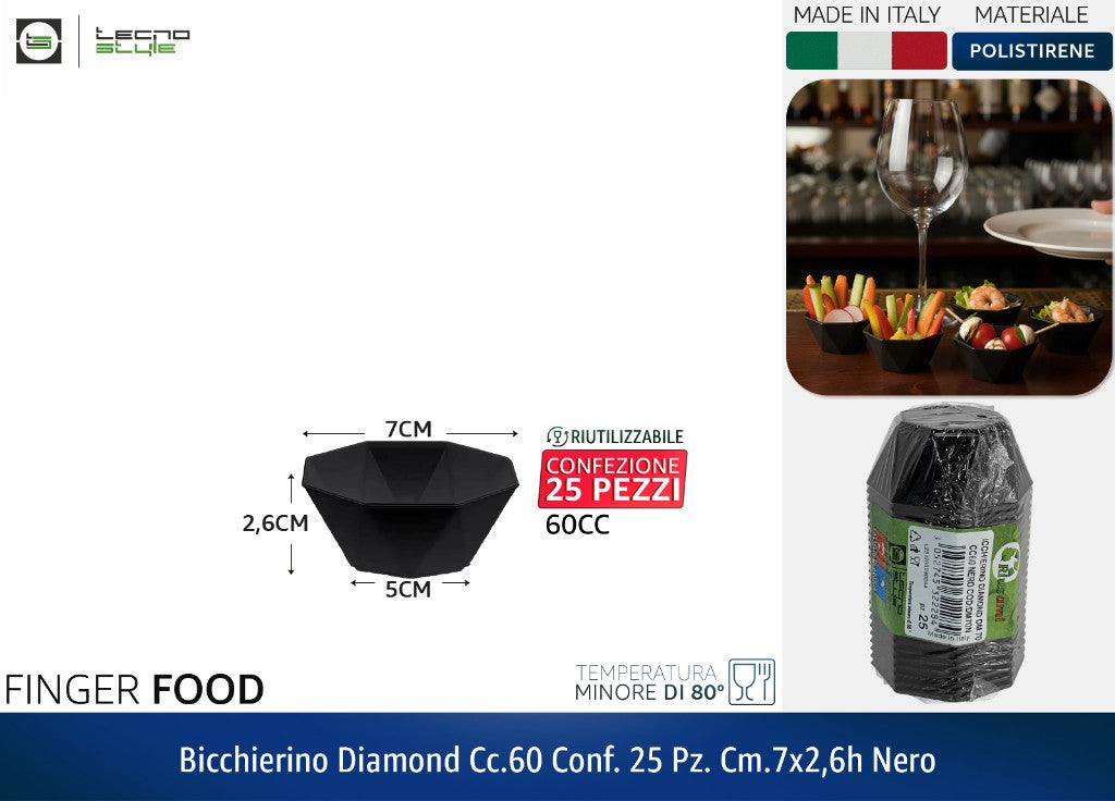 BICCHIERINO DIAMOND CC.60 CONF. 25 PZ. CM.7X2,6h NERO