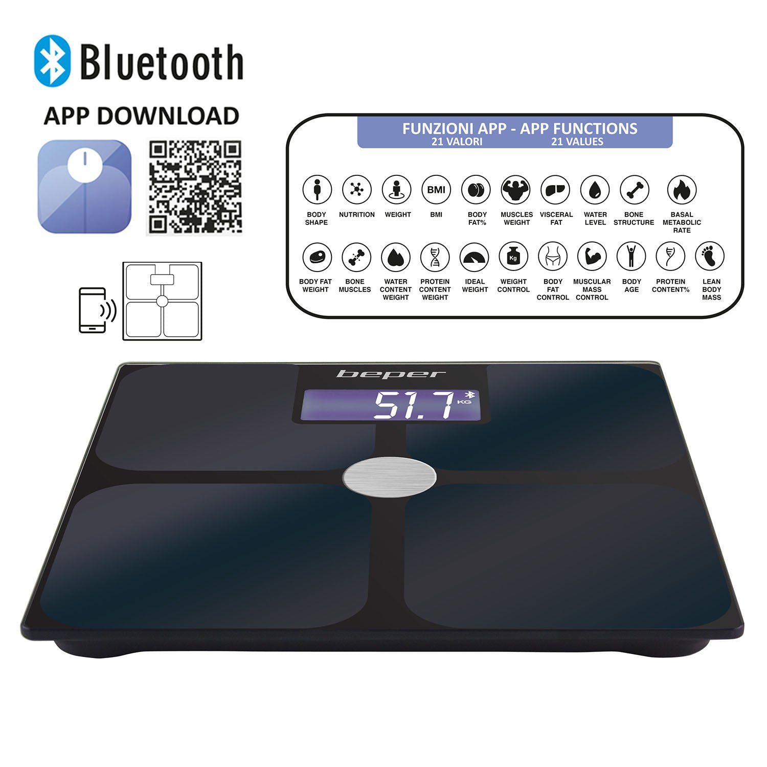 BILANCIA PESAPERSONE ELETTR. IMPEDENZIOMETRICA CON APP