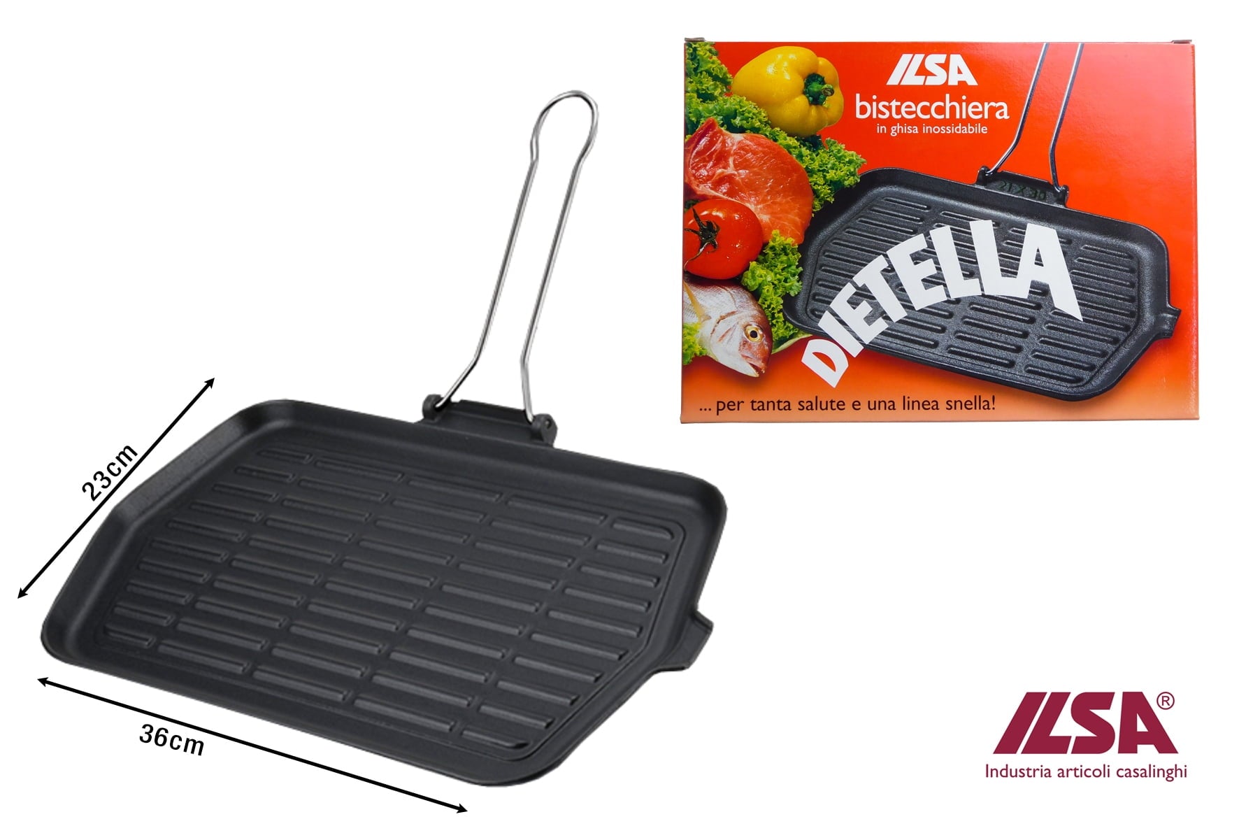 Ilsa Bistecchiera Dietella Rett.re Ghisa Cm.23x36 X Induzione
