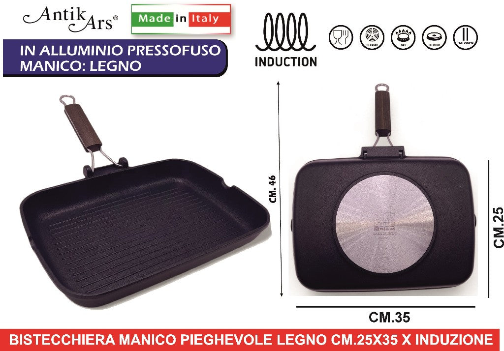 BISTECCHIERA GRILL CM.25X35 MAN. PIEGHEVOLE X INDUZIONE