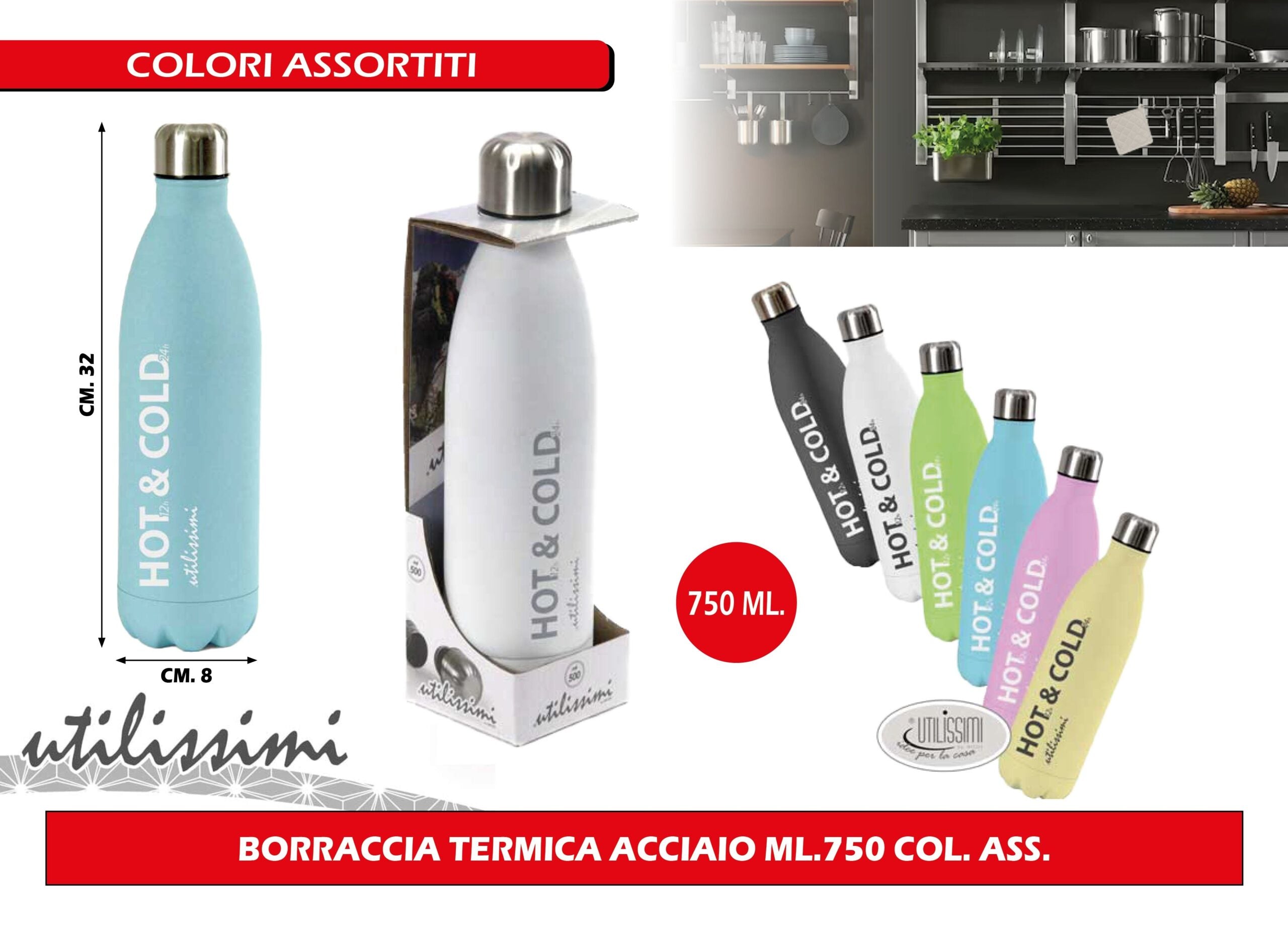 Borraccia Termica Acciaio Ml.750 Col. Ass.