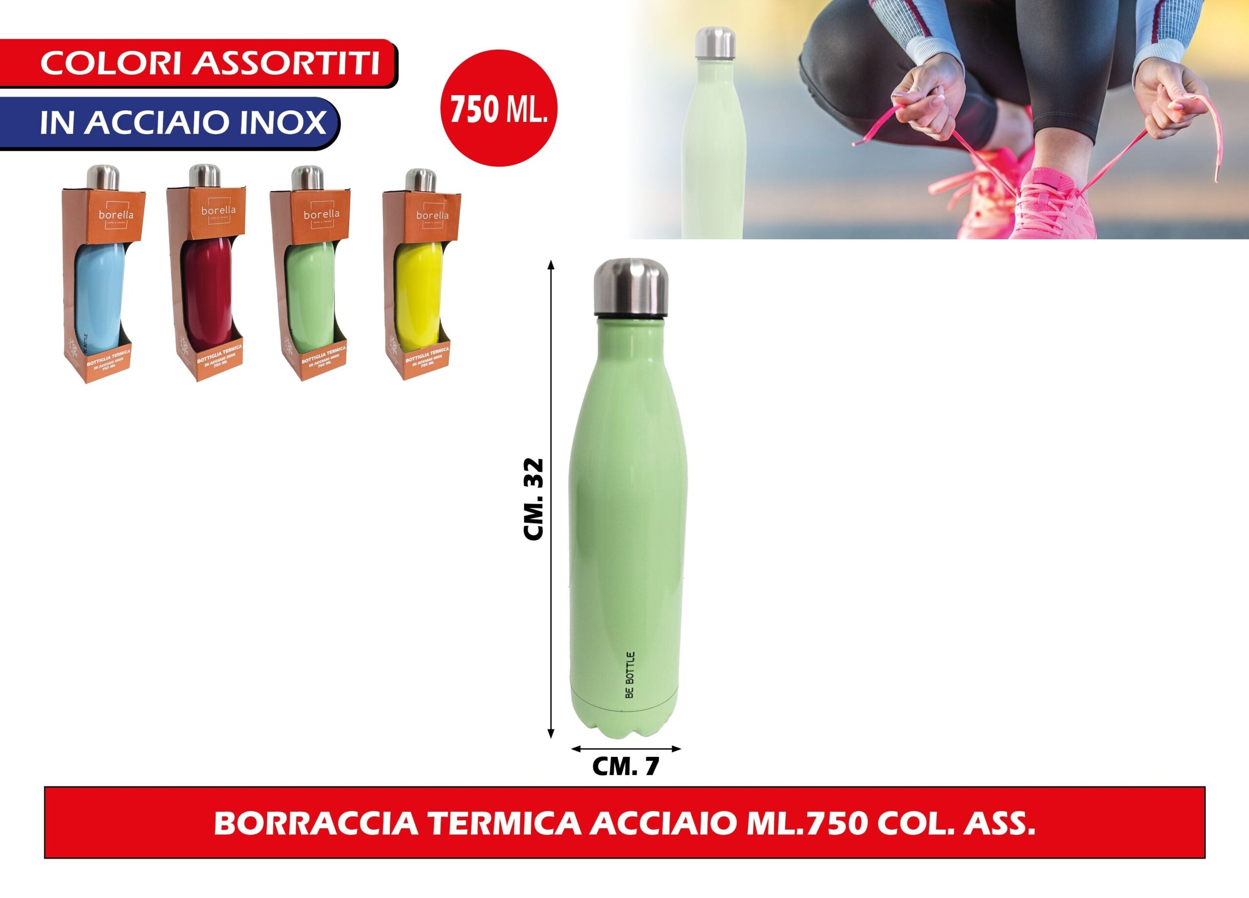Borraccia Termica Acciaio Ml.750 Col. Ass.