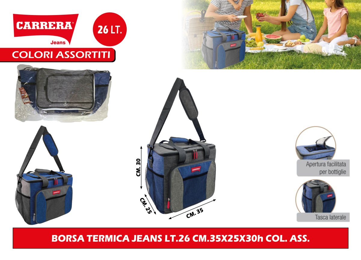 BORSA TERMICA JEANS LT.26 CM.35X25X30h COL. ASS.