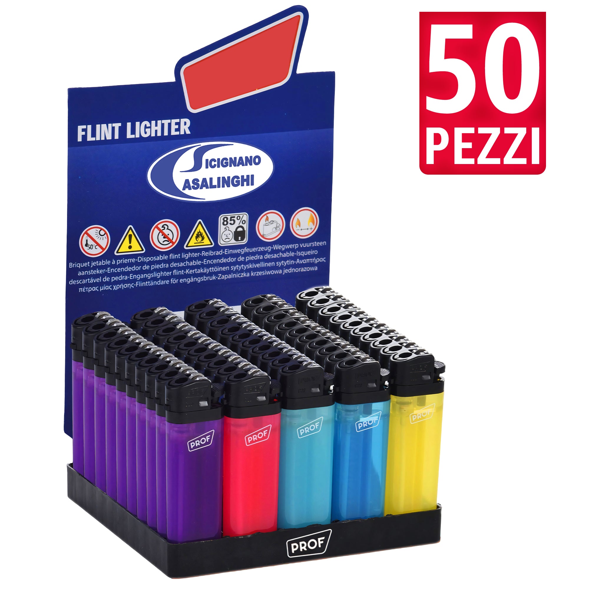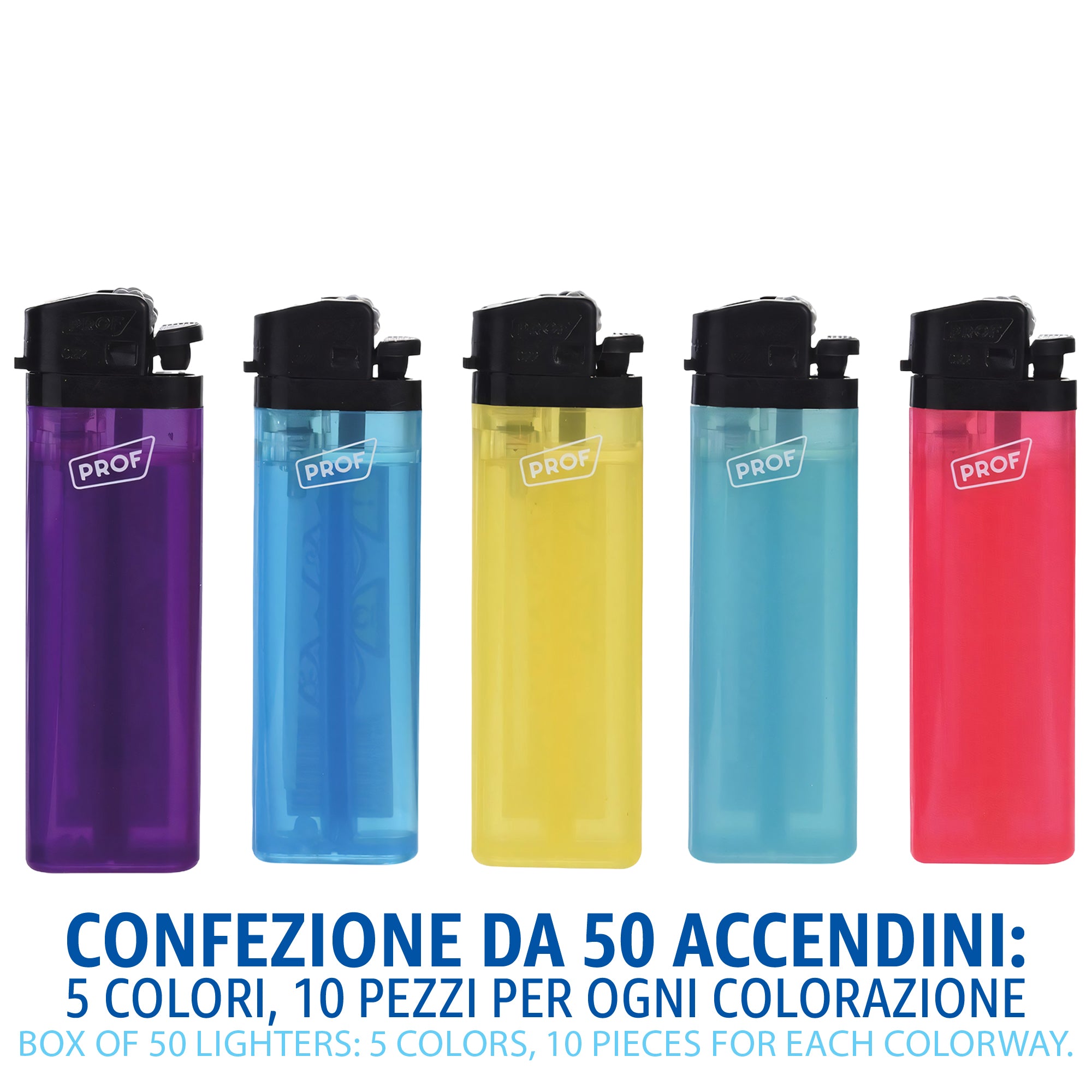 Box 50 Accendini a Pietrina Fluo Traslucidi - Fiamma Regolabile