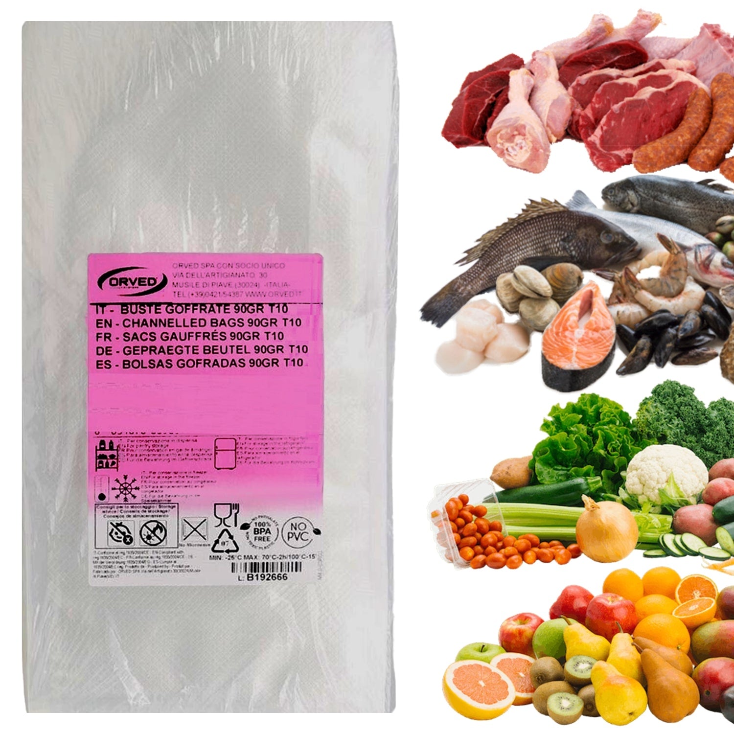 Buste Goffrate A Confezione 25 Pezzi Per Sottovuoto Sacchetti Sottovuoto Per Macchina Sottovuoto, Buste Sottovuoto Alimenti Senza Bpa (Cm 16X24)