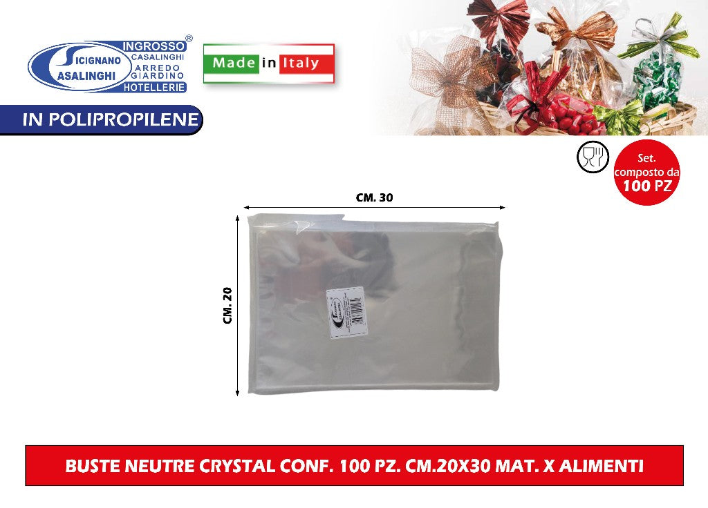 Buste Neutre Crystal Conf. 100 Pz. Cm.20X30 Mat. X Alimenti