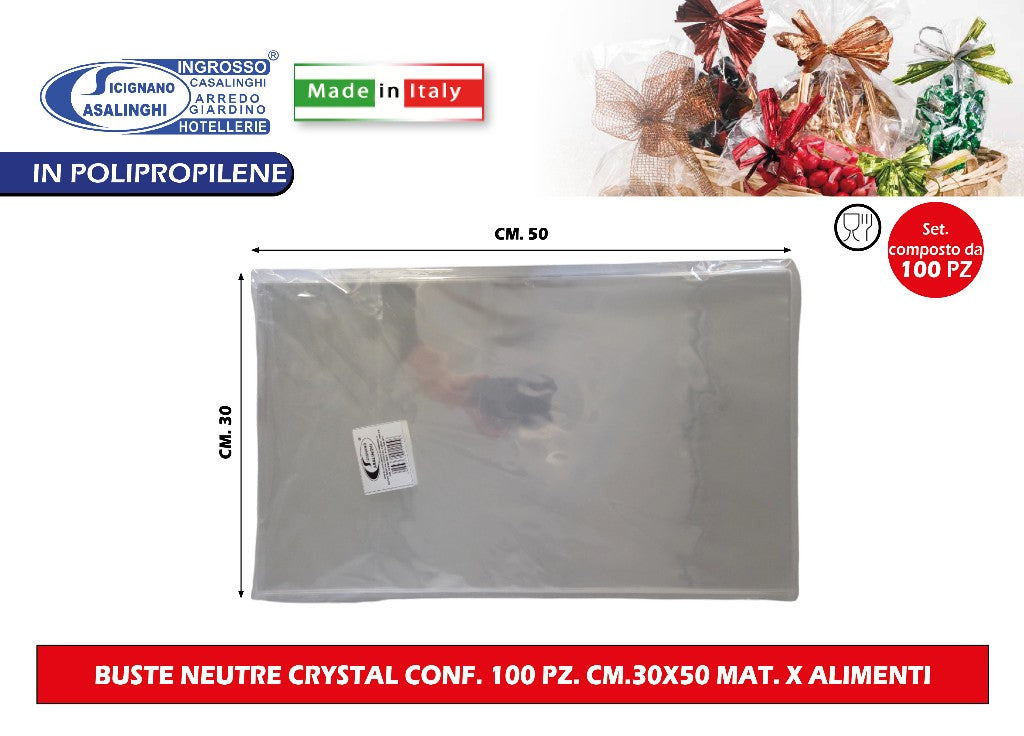 Buste Neutre Crystal Conf. 100 Pz. Cm.30X50 Mat. X Alimenti