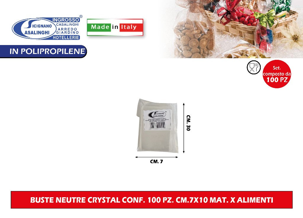 Buste Neutre Crystal Conf. 100 Pz. Cm.7X10 Mat. X Alimenti
