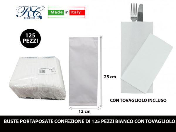 Buste Portaposate Conf. 125 Pz. Bianca Con Tovagliolo