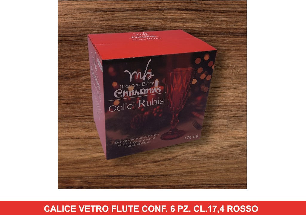 Calice Vetro Flute Conf. 6 Pz. Cl.17,4 Rosso
