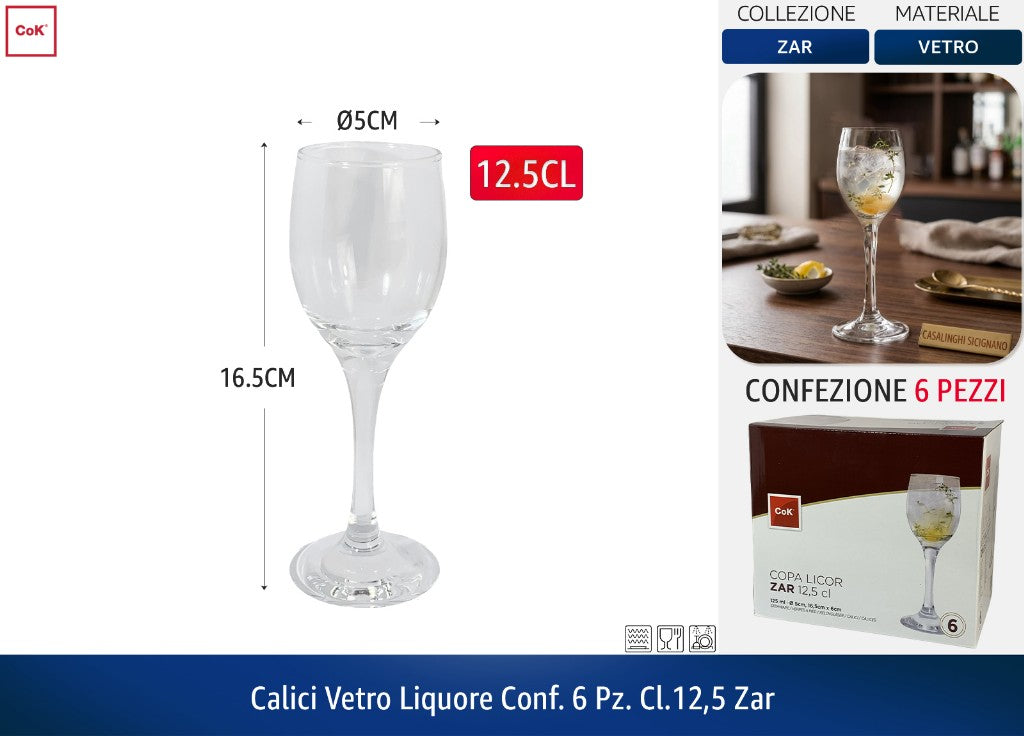 CALICI VETRO LIQUORE CONF. 6 PZ. CL.12,5 ZAR
