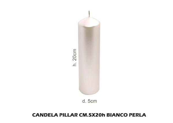 CANDELA PILLAR CM.5X20h BIANCO PERLA