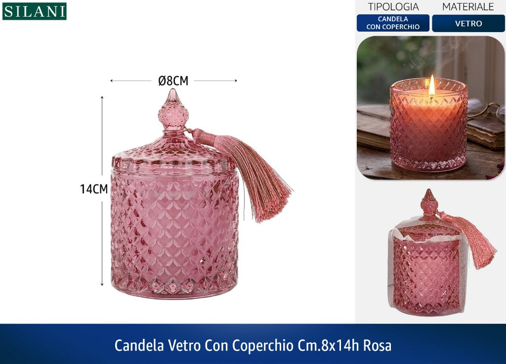 CANDELA VETRO CON COPERCHIO CM.8X14h ROSA