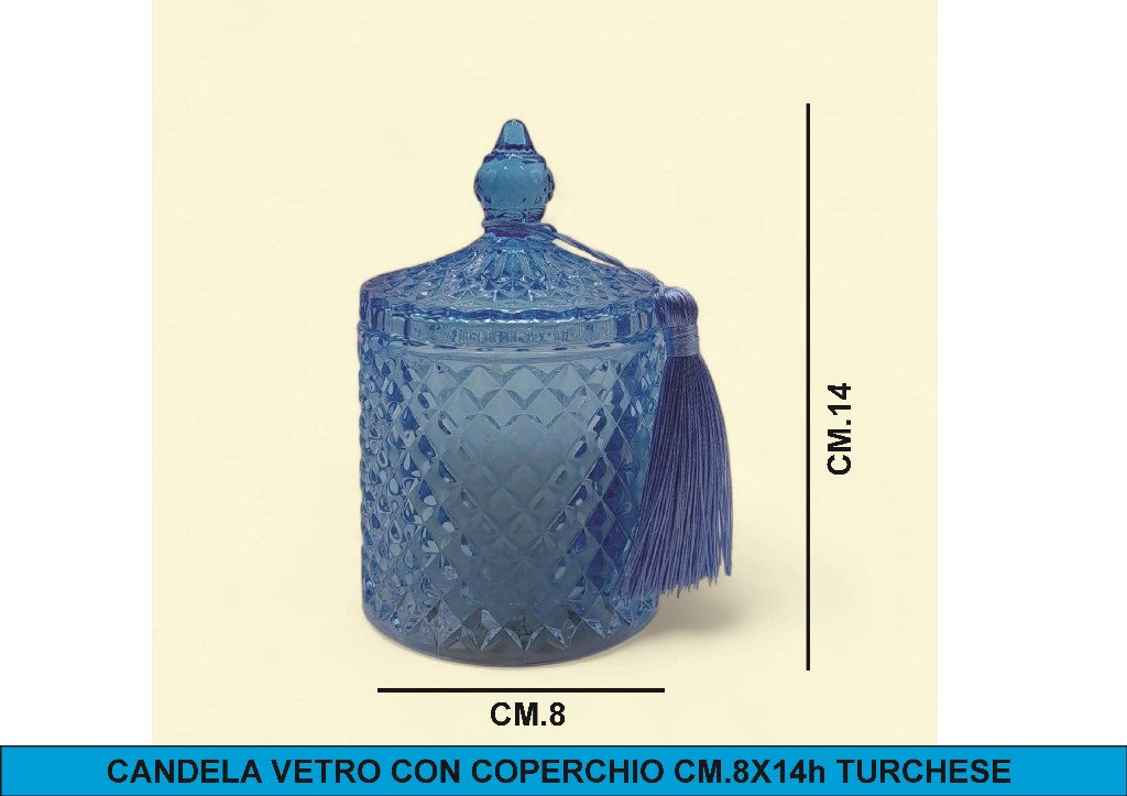 CANDELA VETRO CON COPERCHIO CM.8X14h TURCHESE
