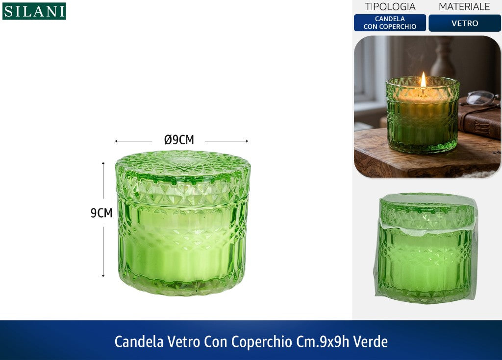 CANDELA VETRO CON COPERCHIO CM.9X9h VERDE