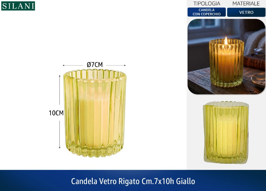 CANDELA VETRO RIGATO CM.7X10h GIALLO
