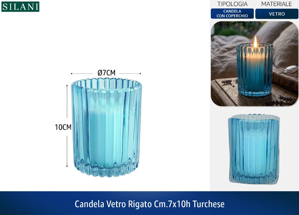 CANDELA VETRO RIGATO CM.7X10h TURCHESE