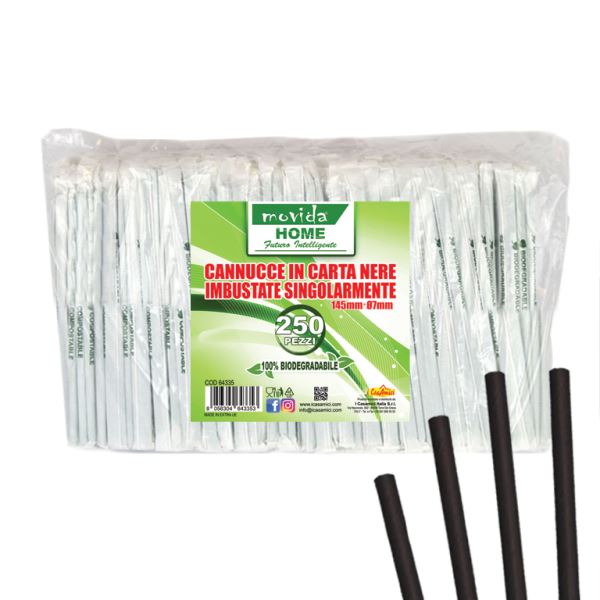 Cannucce Carta Bio Conf. 250 Pz. Cm.14,5X0,7 Nere Incart.
