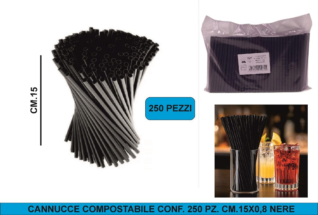 CANNUCCE COMPOSTABILE CONF. 250 PZ. CM.15X0,8 NERE