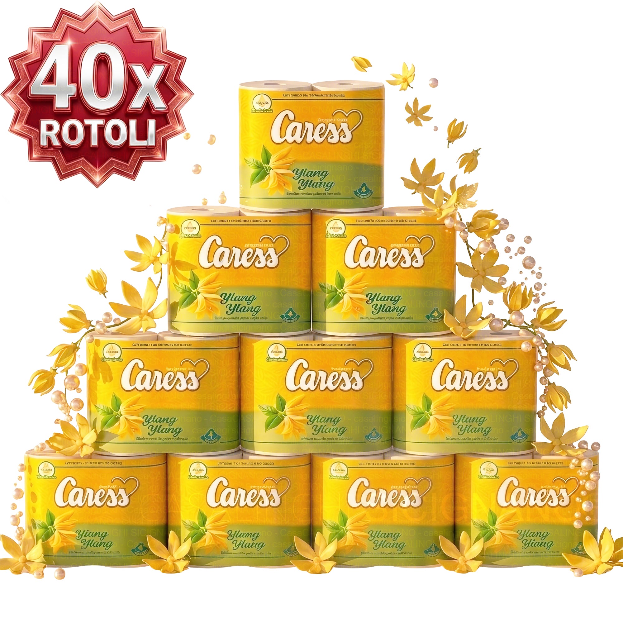Carta Igienica Caress Ylang Ylang - Scorta 40 Rotoli 2 Veli