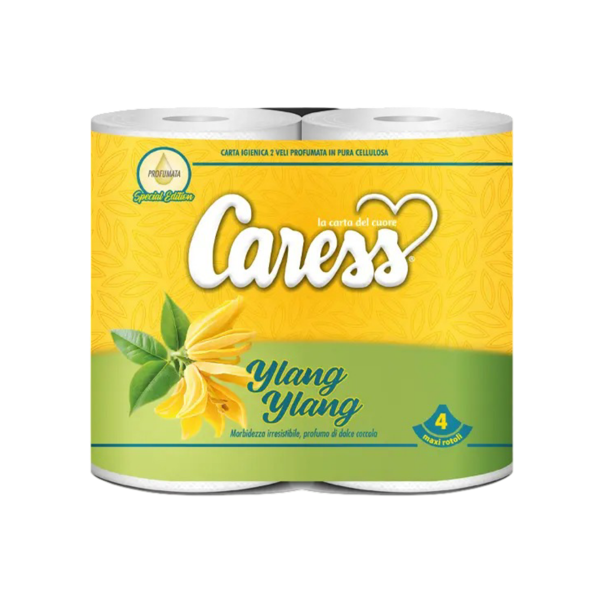 Carta Igienica Profumata Ylang Ylang 2 Veli - Goffradeco Incolla, 100% Cellulosa, Caress Profumata - Conf. 10 x 4 Rotoli